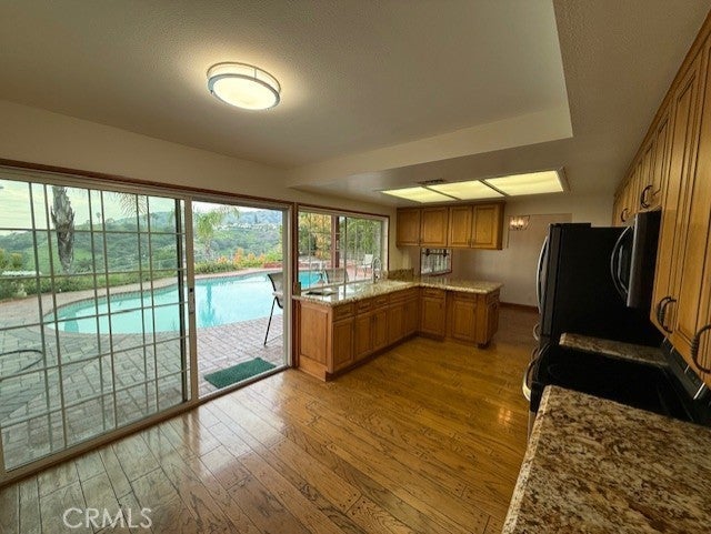 View, View, View! Original Owners-First time EVER on the Market. 10,356 SF LOT with RV Parking! Located in the desirable Burbank Hills, this home offers sweeping city views and a private gated entrance. Situated at the end of a quiet cul-de-sac, this 5-bedroom, 3-bathroom pool and spa home is a must-see. Enjoy a functional layout with four bedrooms upstairs and one conveniently located downstairs. The kitchen opens to a formal dining room, with sliding doors that lead directly to the sparkling pool—perfect for indoor/outdoor living. The spacious living room features a cozy fireplace, while the den includes a wet bar and direct access to the pool area, ideal for entertaining. A long paver driveway leads to a 3-car attached garage, with additional RV parking and ample off-street parking. Don’t miss this rare opportunity to own a private hillside retreat with breathtaking views near Brace Park!