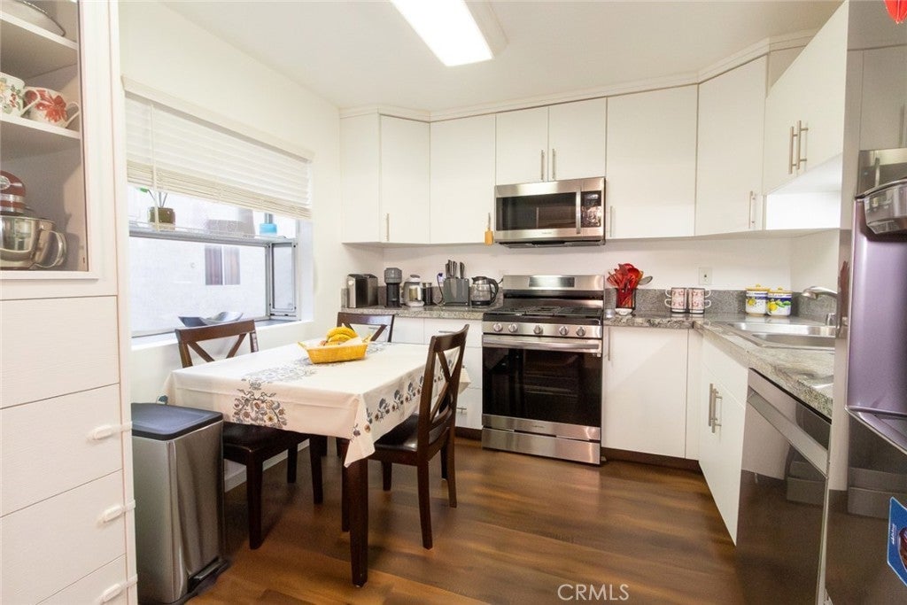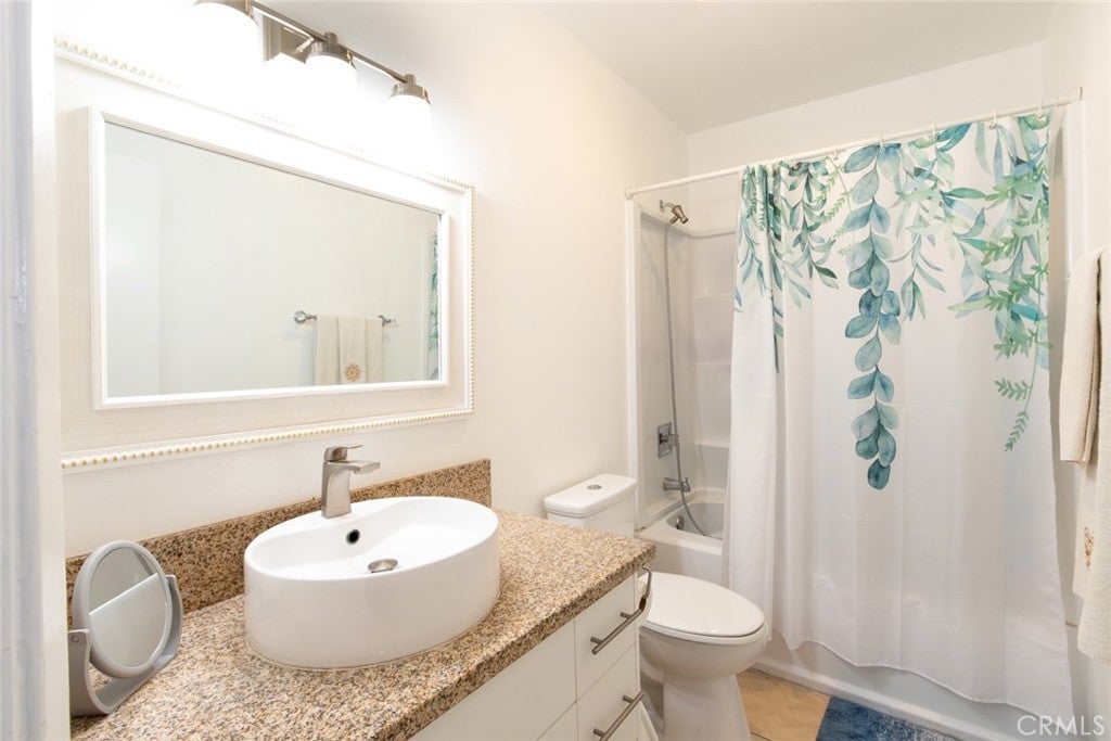 Welcome to this cozy , clean, bright, end-unit townhome in the highly sought-after Cabrini Villas hillside community! This beautiful and airy tri-level townhouse boasts private end views and direct access from the street. The spacious living and dining areas feature laminated floors and open to a large, private tiled patio— perfect for relaxing or entertaining. The brand-new kitchen includes sleek granite countertops, soft-close cabinets, and stainless steel appliances. Upstairs, you'll find three well-sized bedrooms, including a master suite with a large walk -in closet, private balcony, and a fully remodeled en-suite bathroom. The two additional bedrooms share a stylishly updated bathroom. The lower level offers a secluded two-car garage with laundry area and a bonus room, ideal for an office or hobby space. Cabrini Villas offers resort-style amenities, including 7 swimming pools, 4 spas, 6 lighted tennis courts, basketball and volleyball courts, playgrounds, and a clubhouse, all within beautifully landscaped grounds. With easy access to freeways, shopping, dining, and entertainment. This quiet and desirable end-unit townhome is truly one of a kind. Don't miss out on this exceptional opportunity!