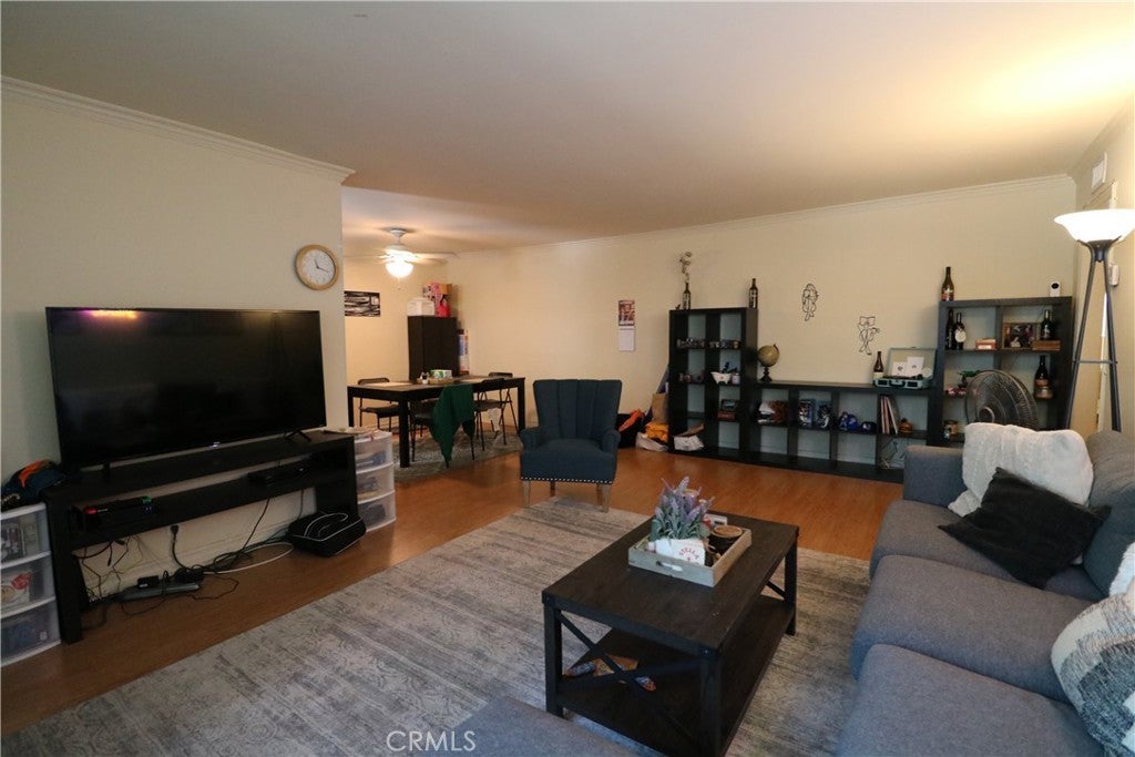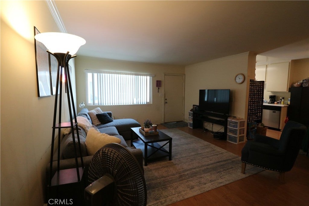 Spacious 2 BR, 2 BA end unit containing 1,155 sf of living area located within the Burbank Rancho in close proximity to studios, shopping, the Los Angeles Equestrian Center, and Griffith Park. Centrally located at "The Shelton", a 20-unit condominium complex offering a modern vibe exterior, renovated glass door entry, and lighted central courtyard adjacent to the Burbank Media District to the west and Toluca Lake within a few minutes drive. Starbucks and Pavilions are located less than a block away, along with other retail stores and dining. Plenty of natural light fills the unit featuring a spacious living room, separate dining area, galley kitchen, and two large bedrooms with large windows and an abundance of storage space in the closets. Highlights include in-unit laundry hookups, crown moldings, two side by side parking spaces, designated storage lockers in the grade-level garage, fitness room, and community rear yard.