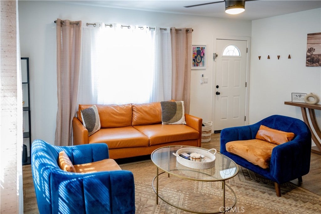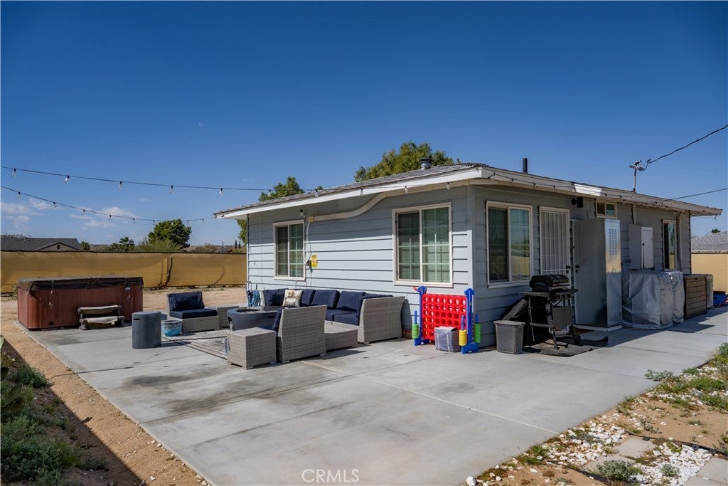 FULLY FURNISHED!! Turnkey desert retreat and successful Airbnb opportunity. Just 9 minutes from the iconic Joshua Tree National Park. This fully furnished home is being sold with all furniture, décor, hot tub, cowboy pool, and hammocks included, allowing the next owner to seamlessly continue operating it as a short-term rental or enjoy it as a personal getaway. Situated on a large lot with ample parking, the property offers beautiful mountain views and plenty of outdoor space to relax under the unbelievable desert sky. The expansive lot also provides room to expand the existing home or build an additional front house, offering great potential for future development or added value. Renovation in 2023 included: new mini splits in both rooms and living room that work perfectly in cooling the house in the summer heat and keeping it warm during the "winter" desert nights, New fans throughout, new flooring, new recessed lighting, bathroom and kitchen all upgraded, new appliances, copper plumbing, new cement slab surrounding the house. 2024: added ambient lighting in the kitchen above and below the cabinets. This is rare chance to own a move-in ready desert escape with income already flowing in and room to grow. Buy it before someone else will! Seller is a licensed real estate agent.