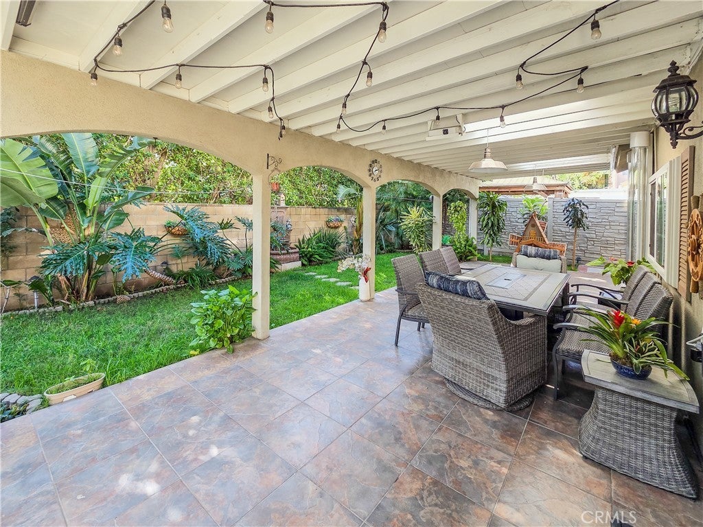 Welcome to this beautifully upgraded 4-bedroom, 2.5-bathroom home located in the highly desirable Larkspur Gated Estates II gated community. Offering 1,939 square feet of thoughtfully designed living space, this two-story residence blends modern upgrades, comfort, and convenience in a secure community setting. Step inside to a bright and open floor plan featuring high ceilings, recessed lighting, and a cozy gas fireplace, creating a warm and inviting space perfect for both relaxing and entertaining. The spacious kitchen is designed for functionality and gatherings, featuring granite countertops, stainless steel appliances, and ample cabinetry. The home offers multiple dining options, including a dedicated formal dining room, a breakfast nook, and additional in-kitchen seating, making it ideal for everyday living as well as hosting guests. Upstairs, all bedrooms provide privacy and comfort, including a spacious primary suite featuring dual sinks, granite counters, a walk-in shower, soaking tub, and a generous walk-in closet, creating the perfect private retreat. Two of the bedrooms feature walk-in closets, providing additional storage and convenience. This home has been thoughtfully updated with recent upgrades including remodeled bathrooms, new flooring, an AC unit, gas water heater tank, and an upgraded garage opener system. Energy efficiency is an added bonus with 15 fully paid-off solar panels, helping reduce electricity costs. Step outside to a private backyard retreat complete with a covered patio, garden area, and grassy lawn, perfect for outdoor dining, entertaining, or simply enjoying the outdoors. Additional highlights include central air and heating, a built-in fire sprinkler system, and a 2-car attached garage. The property also offers extra parking with a private driveway in front of the home and dedicated parking spaces conveniently located on the side. Conveniently located near shopping, dining, parks, and major freeways, this move-in-ready home offers comfort, convenience, and the security of gated community living with a low HOA. Don't miss the opportunity to make this beautiful home your own!