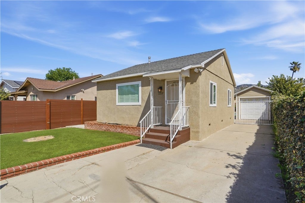 Pool home under $750K on a gated 5,425 SF lot. Private in-ground pool with energy-efficient pump, covered patio, and lush backyard. This 2-bed/1-bath home features copper plumbing throughout, central A/C and heating, upgraded windows with plantation shutters, granite countertops, oak cabinets, and a stone accent wall fireplace. Decorative iron security gates with stone pillars at the entry lead to a long driveway. New automatic sprinkler system. Hardwood floors in bedrooms. Converted bonus room with vinyl plank flooring. Storage shed with electrical near pool area. Washer/dryer hookups. No HOA. Located in the heart of San Fernando — neighborhood park nearby, minutes from dining, I-5 and I-210 freeways. A rare find for buyers looking for a turnkey pool home with upgraded systems at a price point that's hard to match anywhere in LA.