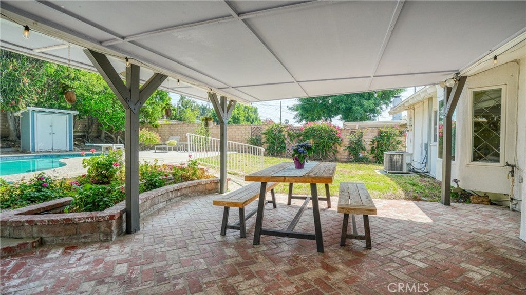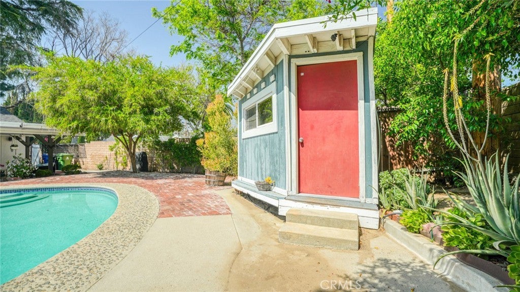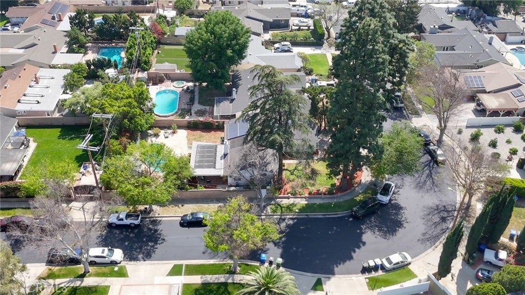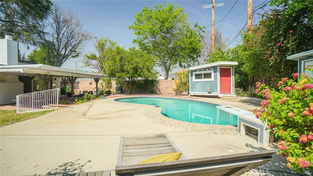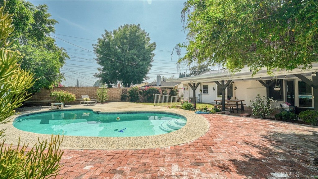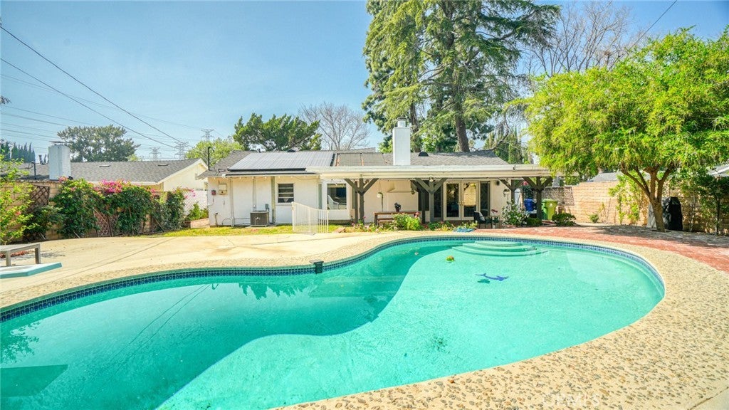 Welcome to this beautifully updated ranch-style pool home, on a cul-de-sac in the heart of Granada Hills. The expansive lot features mature pine trees and landscaping creating a stunning curb appeal. As you enter, natural light fills the space to an inviting open-concept living, dining, and remodeled kitchen. The stunning kitchen features beautiful white quartz countertops, an elegant backsplash, shaker-style white cabinetry, stainless steel appliances, and a bar-top counter perfect for casual dining. The spacious living area off the kitchen is perfect for entertaining and gathering, while a decorative fireplace anchors the room between the dining and family room. Off the dining area French doors lead to a covered brick patio perfect for dining al fresco and gatherings, while the sparkling pool offers serenity in this private, peaceful setting on warm California days. The home features 3 nice sized bedrooms with plenty of storage and the primary is complete with its own ensuite bathroom, creating a soothing comfortable retreat. Upgrades include newer AC, luxury vinyl plank flooring throughout, upgraded electrical, bathrooms and kitchen, and newer roof with paid off solar for the home and pool offering energy efficiency and long-term savings. The attached garage provides plenty of storage for all your toys, while the large driveway allows plenty of space for side-by-side parking. This home is close to everything including shopping, dining and parks. A perfect blend of style, functionality and So Cal indoor-outdoor living-this Granada Hills gem is the one you’ve been waiting for. Welcome home!