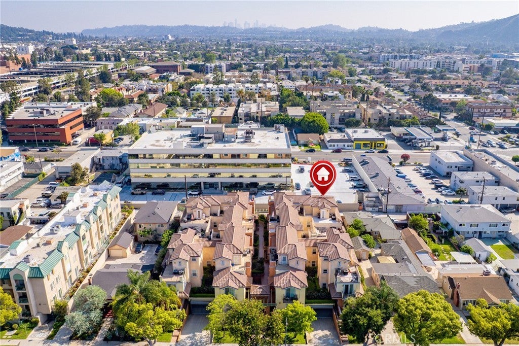 3 bedrooms, 4 bathrooms, and 3 parking spaces — this spacious and bright corner unit townhome in the heart of Glendale offers approximately 1,840 square feet of well-designed living space with high ceilings and abundant natural light throughout. Recently refreshed with new paint, the main level welcomes you with an open-concept floor plan that flows seamlessly from room to room. The stylish kitchen features granite countertops, a custom backsplash, and a breakfast bar that opens to a large dining area leading to your own private patio. The inviting living room is centered around a beautiful fireplace, creating the perfect space for entertaining. A tasteful powder room, along with direct access to the attached two-car garage, one storage room, and an additional parking space conveniently located next to the garage, completes the first level. The second level offers two spacious bedrooms, including a suite with a walk-in closet and private full bath, along with a conveniently located laundry area and an additional three-quarter bath with a glass shower enclosure and custom vanity. The top level is dedicated to a grand private suite featuring one walk-in closet, an additional room ideal for a home office or flex space, a private bath, and direct access to a rooftop private deck with stunning panoramic views of the hills, city lights, and the Downtown Los Angeles skyline. Built in 2009 and ideally located near the Americana at Brand and the iconic Glendale Galleria, along with top dining and shopping, this exceptional residence combines comfort, functionality, and prime Glendale living — a rare opportunity you won’t want to miss.