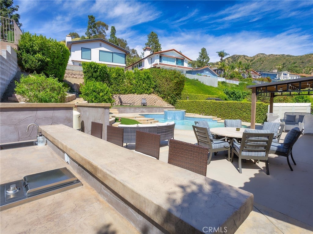 Dreams truly do come true in this stunning mini gated estate, perfectly situated on an expansive 9,280 square foot lot. Boasting 3,214 square feet of beautifully upgraded living space, this exceptional three-story home offers 4 spacious bedrooms and 5 well-appointed bathrooms, all designed with comfort and elegance in mind. From the moment you step through the formal entryway, you are greeted by a sense of sophistication and warmth. The inviting living room features a charming fireplace, while the formal dining room provides the perfect setting for memorable gatherings. A huge family room creates an ideal space for relaxing or entertaining on any scale. The newly remodeled kitchen is a true showpiece, complete with stainless steel appliances and modern finishes that will delight any home chef. Over $300,000 has been thoughtfully invested in upgrades throughout the home, ensuring a blend of luxury and functionality at every turn. Step outside to an entertainer’s backyard designed for unforgettable moments, featuring a sparkling saltwater pool and spa, covered patio, and breathtaking views that elevate the entire experience. Additional highlights include a private workout room with sauna, a versatile studio perfect for musicians or creatives, central heating and air conditioning, a convenient laundry area, and a 2-car attached garage with direct access. This extraordinary property is truly a showplace with too many features to list. A rare opportunity you won’t want to miss. This is a must see.