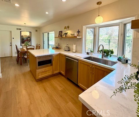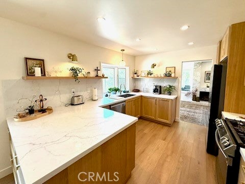 Perched on a desirable corner lot in the foothills of La Cañada Flintridge, this thoughtfully updated residence blends timeless design with modern livability, all framed by sweeping city lights and the surrounding golf course views. A warm, inviting interior unfolds with LVP white oak floors and an effortless flow between living spaces. The remodeled kitchen anchors the home with refined finishes and functionality, while a brand-new sunroom extends the living experience—perfectly capturing natural light and the home’s picturesque setting. Designed for both everyday living and elevated entertaining, the property features newly installed pavers and upgraded hardscape that seamlessly connect front to back, creating a cohesive outdoor environment that embraces the views. The primary suite offers a private retreat, complete with a beautifully remodeled bathroom, while an updated powder room adds a layer of polish for guests. Every detail reflects pride of ownership and thoughtful upgrades throughout. New HVAC, appliances and tankless water heater. All upgrades done in 2025 A rare opportunity to own a turnkey home in a coveted foothill location—where design, comfort, and views come together effortlessly