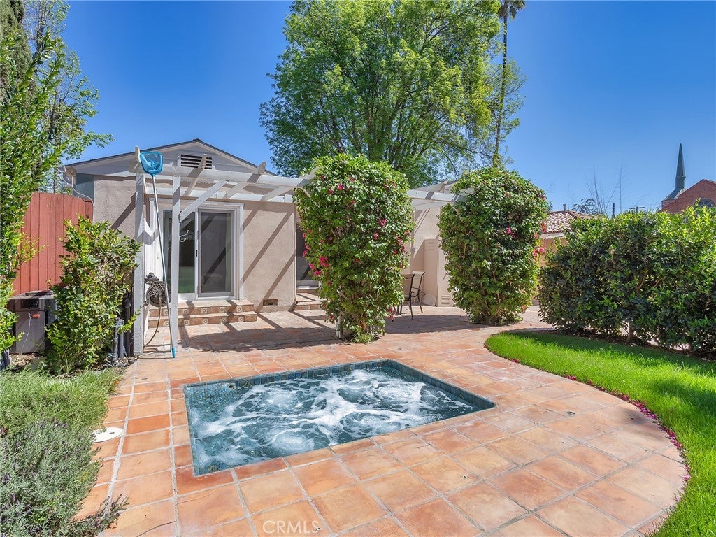 Set on a generous 6,800 square foot lot, this charming California Traditional property offers a rare blend of comfort, functionality, and location, positioned immediately adjacent to the highly regarded Oakwood School. The thoughtfully landscaped grounds feature drip and sprinkler irrigation, ambient landscape lighting, and a serene in-ground hot tub spa with lighting, perfect for relaxing evenings. A plum tree enhances the backyard, while practical upgrades such as a water softener add to the home’s everyday livability. The main residence spans approximately 1,275 square feet and includes two bedrooms and two bathrooms. Interior highlights include a formal entryway, a dedicated dining room, and a welcoming living room centered around a wood-burning fireplace, which is already plumbed for gas. The kitchen comes fully equipped, featuring a brand-new 36-inch refrigerator, and both the washer and gas dryer are included. Bedrooms have dual-pane glass for added comfort. The home also offers permitted extra parking in front and is serviced by a new HVAC system. Complementing the main house is a versatile 298 square foot ADU, complete with a 3/4 bathroom with a certificate of occupancy 3/28/18 (non-rent controlled). This private space features French doors, a two-burner gas stove, tankless water heater, gas heater, and durable luxury vinyl plank flooring. The ADU is internet-ready with Spectrum service and includes a separate electric submeter (owner-monitored), while gas and electricity are shared with the main house. This unique property presents an exceptional opportunity to enjoy classic California living with added flexibility, security, and income or guest potential.