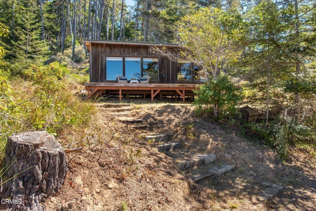 This unique property has blue water views of both Fish Rock & Haven's Neck, used by family members as a weekend getaway since 1952. The upslope parcel is 3.8 acres & has a 527 sq ft cabin with a deck, which was built by hand in 1957. The redwood came from Fort Ross lumber mill, located on a bluff overlooking the ocean near the Fort Ross store. The windows were trucked in from Petaluma. This camping cabin has no water, septic or power, but it does have a wood stove for heat. North Gualala Water District has provided a Will Serve letter & PGE is available at the property line, or continue off grid with solar & rainwater harvesting. There is also a possibility of building further up on the lot. Seller has approved exclusion from Mendocino County and a CDP is not required for a septic permit, which seller is working on obtaining.