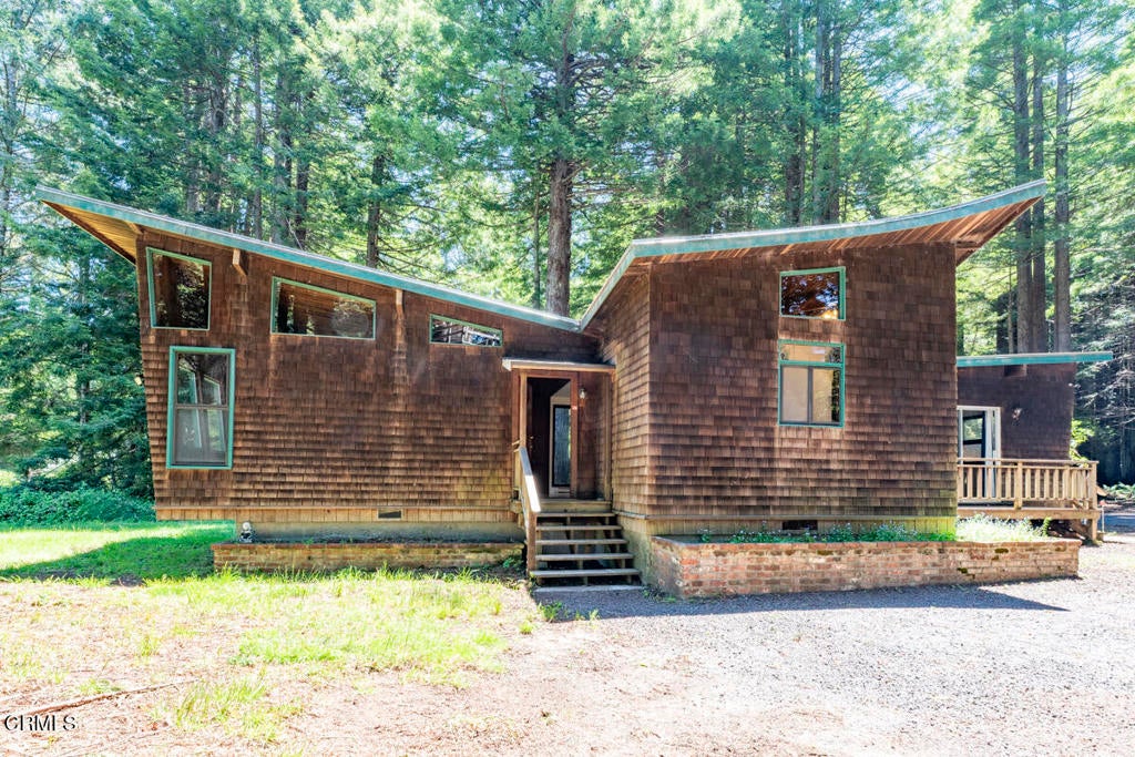 The Water Tower Farm - A Storybook Setting on 4 Acres of Country QuietA blend of redwoods and open meadows, this unique property offers a peaceful retreat with a touch of magic. The four-acre parcel provides generous space for gardens, fruit trees, or a few farm animals. During the rainy season, a vernal pond appears, attracting birds and wildlife and adding to the land's natural charm. The setting feels secluded and serene. At night, the stars shine brightly in the clear country sky, and the air remains cool and fresh, thanks to the nearby ocean.The main home of 1140 sf, features architecturally unique, swooping lines, along with two bedrooms and one bathroom. Warm wood accents throughout make the space feel both comfortable and inviting. Nearby, the picturesque water tower house offers a delightful surprise and an additional 455+sf of living space. On the main level, there is a sitting area, kitchenette, bathroom, and sleeping alcove. The next level includes a flexible space that could serve as a bedroom, studio, or reading room. Above that, a ladder leads to a lofted bed area tucked beneath the rafters.The land is level and accessible, ready for your vision to take shape. If you are seeking a small homestead, a weekend escape, or a home that feels like it stepped out of a storybook, this property welcomes your imagination.