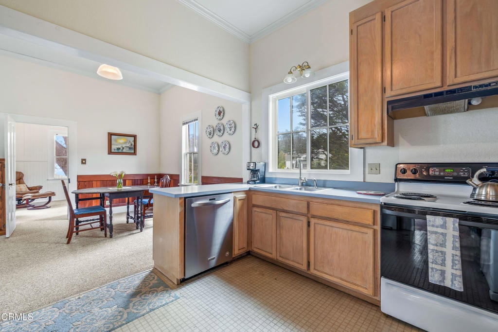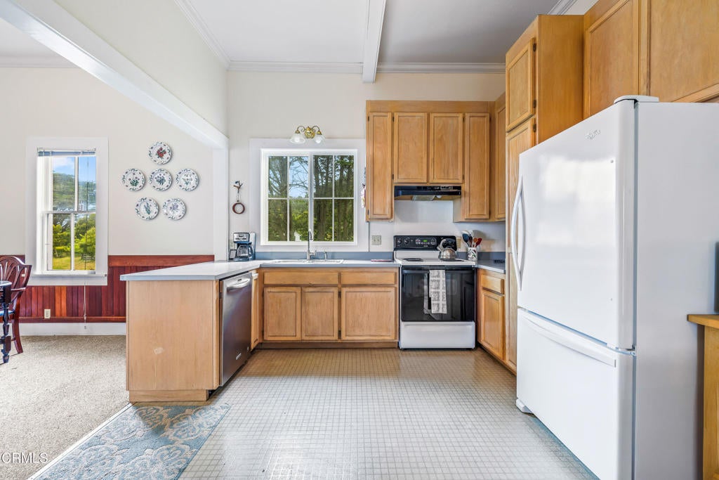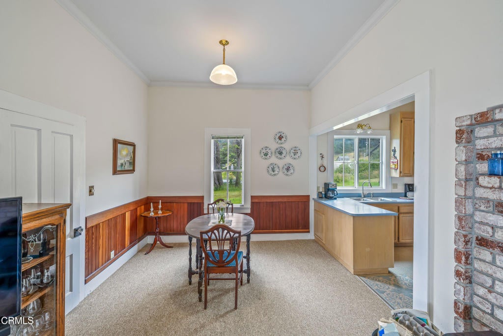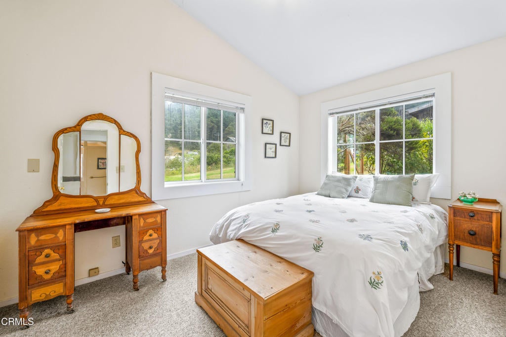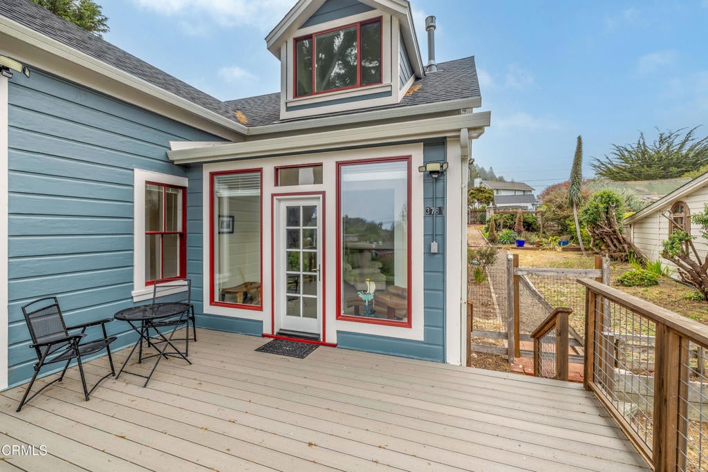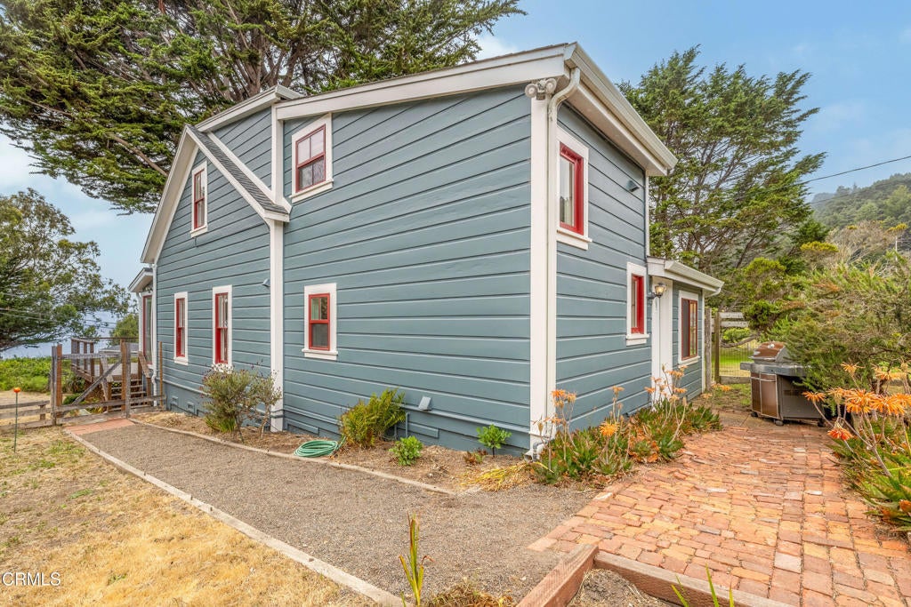 Quintessential Cape-style home with saltbox lines overlooking the Albion Cove and the dramatic Pacific Ocean. On entering the home, you will find open living and dining spaces with a wood-burning stove and airy vaulted ceilings. The kitchen is both spacious and functional with ample cabinetry and counter space. There are three bedrooms on the first floor, with one of the bedrooms offering flexible use as a den or office and a bath featuring a shower/tub combination and two sinks. The upstairs, with its separate entry, has been remodeled to provide a cozy living space with one bedroom and a bath containing a stall shower with beautiful cobalt blue tiling, and a great room complete with a free-standing fireplace, a charming nook, and a 3-sided window seat sporting tree-framed views of Albion River cove. At the back of the property, you will find raised flower beds, a green house, a workshop, and second utility shed. With its great curb appeal and friendly neighborhood vibe, this property is the perfect place to call home!
