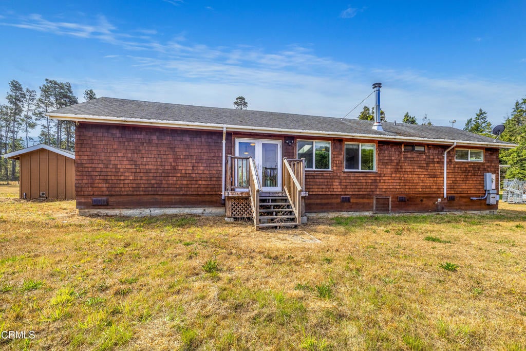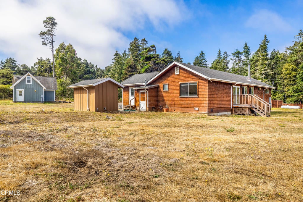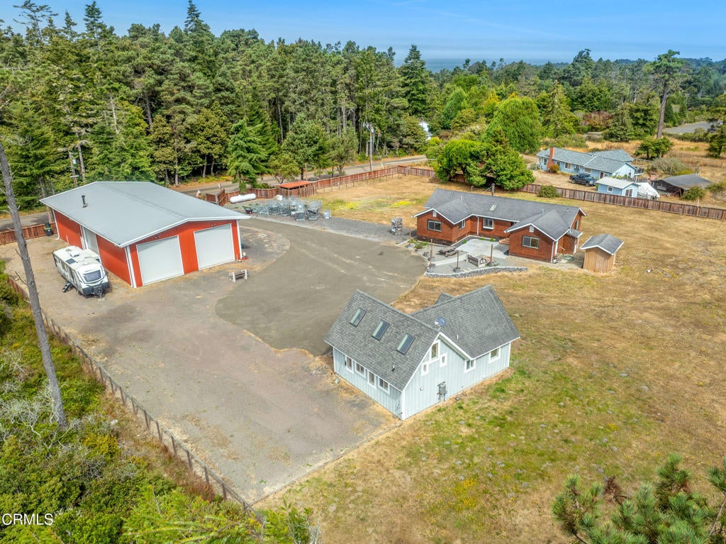 Coastal Live/Work Property with Home, Studio & Massive Shop on 2 Fenced Acres - Minutes from Town & TrailsTucked away in a private, quiet neighborhood set back from the highway, this unique coastal property offers space, flexibility, and functionality on two flat, cleared, and fully fenced acres. Just 3 miles from Fort Bragg and 5 miles from Mendocino, and less than a tenth of a mile from the trailhead to Jughandle State Park and beach access, the location is ideal for both convenience and outdoor living.The 1,700 sq. ft. main home features three bedrooms and three bathrooms, a central heating system, and a wood stove for cozy, efficient warmth. The layout is open and practical, designed for everyday comfort.Just steps from the main house, an 800 sq. ft. art studio provides additional living or workspace. Complete with a full kitchen, bathroom, washer and dryer, and a loft, it's perfect for guests, rental potential, or creative use.A major standout is the 80' x 40' steel shop, built for serious storage and functionality. The shop features:Four 14' x 14' roll-up doors, including two pass-through baysSpace to accommodate boats, RVs, trucks, and equipmentUpstairs flex space with a pool table and bar areaDownstairs gym, workshop, and storageWood stove to keep the space warmOutside, the property includes a large automatic gate, ample parking on both asphalt and gravel, and open space for staging, expansion, or outdoor use. The property exceeds CAL FIRE's defensible space standards, offering enhanced fire safety and peace of mind.Additional features include:Productive drilled wellFiber optic internet availablePlenty of room for live/work setups, creative studios, home-based business operations, or contractor staging.This is a rare opportunity to own a versatile, move-in-ready property in one of the most sought-after areas of the Mendocino Coast--just minutes from town, the ocean, and miles of protected trails.