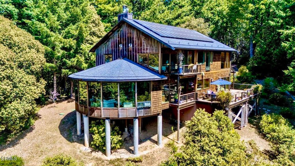 Tired of city life, escape to the Alviso Ridge of the Mendocino Coast with views of the Pacific Ocean, sits a stunning 4220 sq. ft. home built in 2009. On 20 acres of private land, this home is owner designed and has many custom elements beginning with the artisan front door with etched gold leaf details. There's an open-concept living space that is the centerpiece for enjoying coastal views and cozy fires. The family Great Room is where guests come to enjoy their drinks in front of the wood-burning fireplace with its 13' tall elegant chimney. This room features a 30 foot semicircle surround with a floor-to-ceiling wall of 8' by 5' windows and far reaching views. The trees have overgrown and now block much of the ocean view, but they are on the 23901 property and can be cleared/topped to re-gain a beautiful blue water view. Adjoining is a family library/sitting room with propane fireplace. The culinary chef will admire the warm and expansive kitchen with granite counters, Viking appliances, walk-in pantry and oiled birchwood cabinets. A breakfast nook leads to a south facing patio to enjoy sunny mornings, amazing sunsets and an awe-inspiring array of stars at night. The spacious owner's suite has ocean views, 2 large walk-in closets and a luxurious ensuite bathroom with deep soaking tub and walk-in shower. Top-of-the-line solar array feeds into 4 one ton solar batteries and there is no PGE bill to pay. There is also a 21Kw back generator that has rarely been used but offers peace of mind. The well was measured at 20 gallons per minute when drilled. Fire safe features include 10k gallons of water storage and a rooftop sprinkler system. Unimproved basement/storage area with possibilities for extra living space. The road is very well maintained. Leave your worries down the hill and come home to 23901 Pacific Heights.