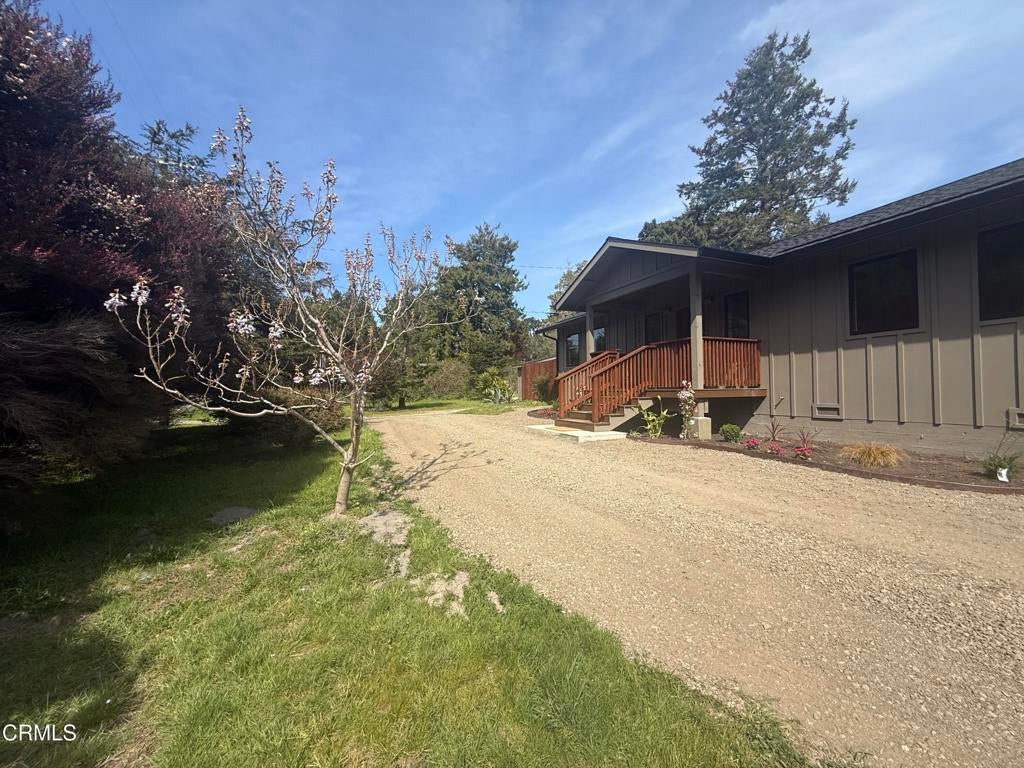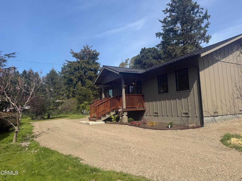 Step into this brand-new re-build is clean and beautifully crafted home set on a full acre of serene land, offering the perfect blend of privacy, nature, and modern comfort. Surrounded by mature apple trees and stunning blooming trees with vibrant purple flowers, this property delivers a peaceful, picturesque setting you'll love coming home to.This thoughtfully designed 2-bedroom, 1-bath residence features a bright, well-lit interior with a gorgeous new kitchen, ideal for everyday living and entertaining. The bedrooms are spacious and inviting, complete with lighted closets for added convenience and style with a view of nature from every window. All bedrooms are on the main floor. Enjoy the outdoors with a charming patio space, perfect for relaxing, hosting BBQs, or simply taking in the fresh air--where you can even hear the calming sound of the ocean in the distance.Built with quality and longevity in mind, this home includes: a Garbage disposal, dimming lights,Brand New composite roof Perimeter foundation with moisture barrierOn-demand water heaterElectric dryer hookupLighting installed under the houseDrilled wellWith ample space and privacy, there's also excellent potential to build an ADU (Accessory Dwelling Unit), making this property a great investment opportunity or multi-use retreat.This is a rare chance to own a fresh, modern home in a tranquil natural setting on the coast of California.