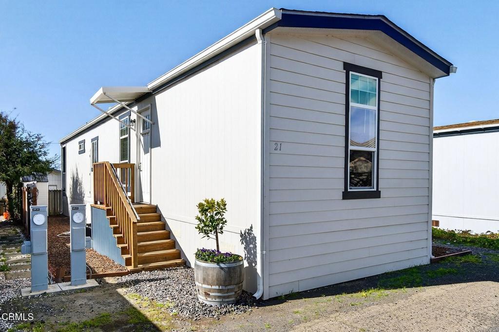 Featuring high ceilings, tall windows, and granite counters, this home delivers a level of luxury uncommon in manufactured homes. Built in 2024, it offers generous insulation and dual pane windows for efficiency and comfort. The well designed living space has stylish vinyl flooring throughout with strong durability and water resistance. Abundant windows brighten each room and a glass sliding door off the primary bedroom leads to a cozy deck with ocean views. The home comes fully equipped with appliances, including the convenient stackable washer and dryer, dishwasher, and garbage disposal. Central propane heat easily keeps the home warm and additional conveniences include keyless entry and low-maintenance landscaping with weed block and wood chips. An orange tree in a wine barrel greets you at the front of the house and sealed redwood steps lead up to the door.The monthly space rent is $715 and includes water and sewer. Alternatively, the home could be relocated to private property as a quick residence or a second unit for guests or income generation. A recent transportation quote was $4,500 for moving it within the Fort Bragg area(including insurance and escorts). Buyer to obtain their own current quote if interested in this quick and flexible housing solution.The current location is desirable. Close to all the shops, restaurants and galleries of Fort Bragg and just a few steps from the start of the Noyo Headlands Trail. This wide, paved path skirts the harbor and then continues northward along the headlands for miles of beautiful Pacific Ocean enjoyment. Start living the coastal dream in this turnkey home by the harbor.