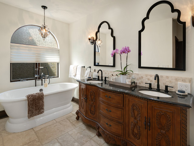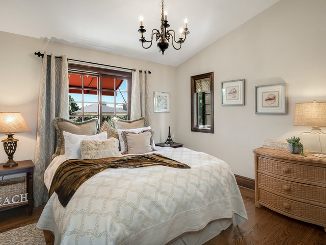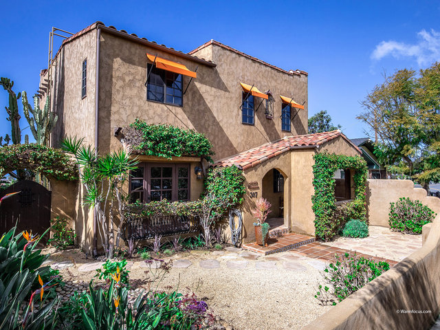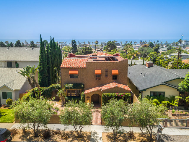 Timeless and prized Spanish architecture, meticulous attention to detail, huge ocean views from most rooms. An entertainer's paradise! The expansive living room flows into a large dining and lounge area connecting to a gourmet kitchen with bar and view terrace. Coastal at its best, a private oasis, low maintenance, completely fenced,"lock and leave", walkable to shops, restaurants, wine and craft beer tasting options, the beach, strolling the pier and so much more! A short drive or bike ride to the harbor. Completely updated, added 1,100 sq. ft. since their purchase, new electrical and plumbing. Restored timeless wood floors,added hand-finished walls, painted tiles, designer fixtures and lighting. Quality and fine craftsmanship exudes throughout! Plus, free-and-clear solar electricity system.