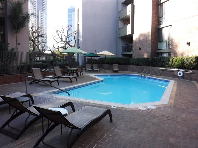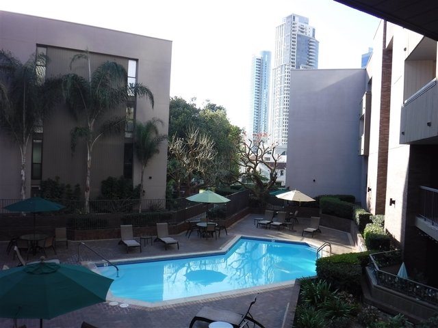 Representing Buyer | Popular San Diego Marina District location! This spacious 859 sq.ft. unit offers great views over the community pool/spa area and out to the neighboring park. Residence offers Bamboo wood flooring throughout, crown molding, gas fireplace, remolded kitchen w/ upgraded cabinets, granite countertops, stainless steel appliances, including built-in GE Profile refrigerator, Dacor built-in oven, separate cook top, microwave, and dishwasher. Bedroom has built-in dressers and custom closets. Large balcony!