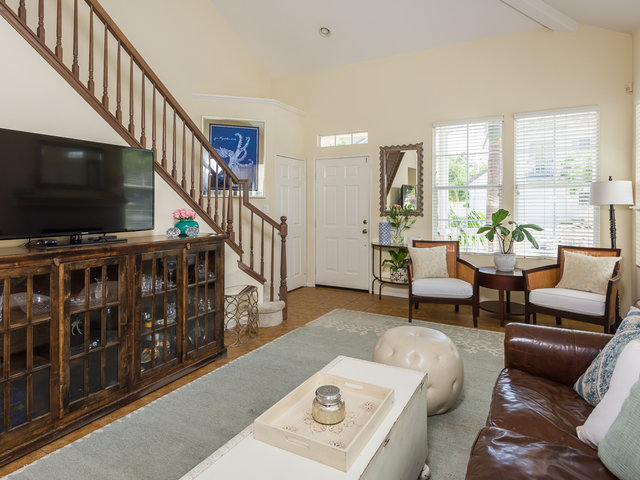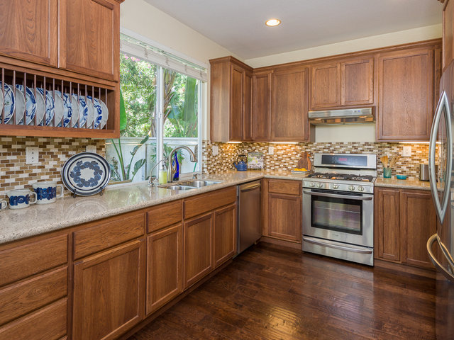 Gorgeous Cambria home with upgraded kitchen, quartz counters, stainless steel appliances, mosaic tile backsplash and upgraded hickory cabinetry. Vaulted ceilings and hardwood flooring throughout the downstairs. Master Suite offers spa-like bathroom with rain shower feature, pebbled floors and walk-in closet with custom organizer. Spacious secondary bedrooms, upgraded bathrooms, and a wonderful low maintenance backyard with synthetic turf and trex decking. Encinitas schools and close to all!