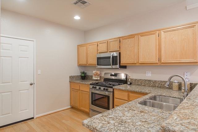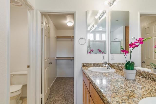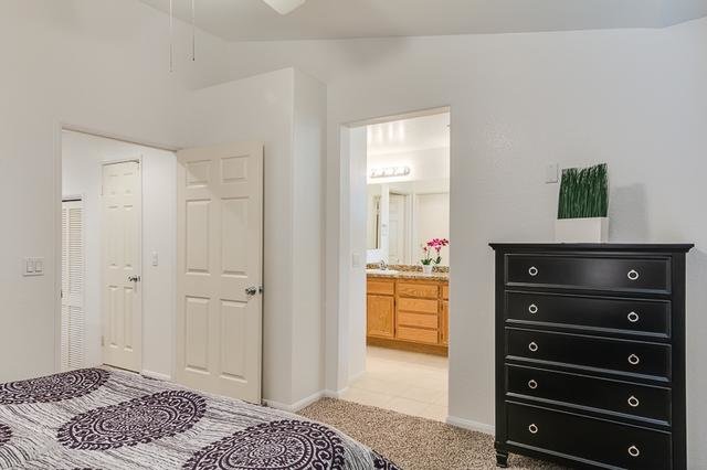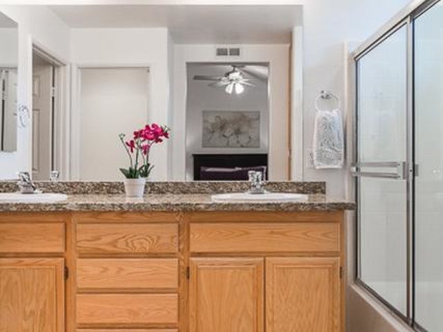 TURN KEY! Beautiful DUAL MASTER two bedroom, two and a half bath unit at Valencia in Rancho Carillo. Freshly upgraded with custom paint, new carpet, stainless steel appliances, and granite counter tops. Attached 2 car garage with additional storage space and a private courtyard. A/C, community pool and spa. Investors, Owner occupants... either way, this property is clean and ready to sell! (Back on Market. No fault of Seller).