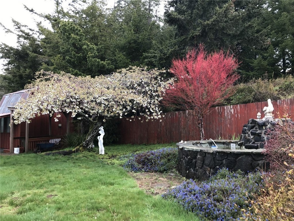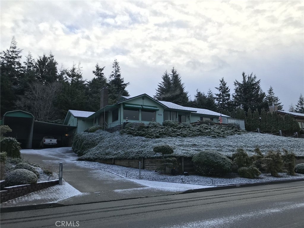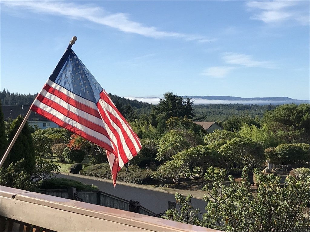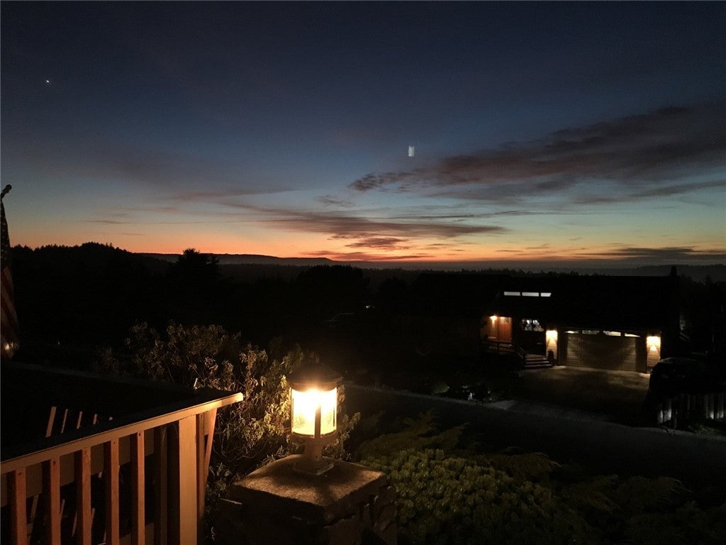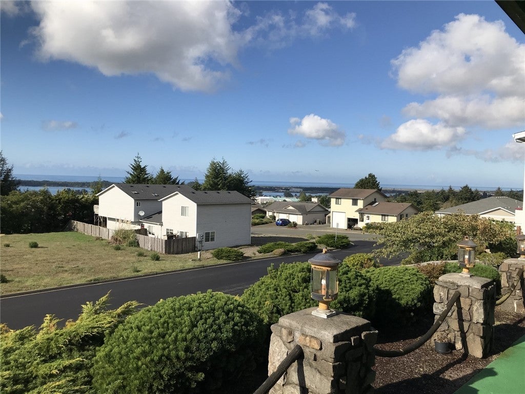Very unique custom style dual kitchens of gourmet and simple brand-new kitchens (could be 2 separate living arrangements with own separate entry) on an elevated above tsunami zone oversized lot (Lot 2 & 3 of Block 1) in an upscale and newer homes neighborhood. Vantage view of rugged ocean, calm bay, isolated island, morning fog, evening sunset...and trees/wood. Elegantly designed ship lights on guard for your home coming. Surrounded by storm tough door and decks. Exercise sunroom. Sauna Room. Detached red building for storage/game/kids-play room. Mature garden with varieties of plants. Fountain/Fishpond. Easy to maintain flooring. Classy real wood cabinets/drawers. ALL appliances, furniture/beddings, tools/equipment, TVs, antique, wall decor...included. Rarely available custom-built home in this famous Prefontaine neighborhood of limited number of homes. Widest frontage (2 lots) and deep set back elegantly is this home. Very high and strong metal cover designed to park/harbor RV/Boat (open parking minimize carbon monoxide poisoning). Plenty of 220V equipped. Fireplace for cozy gathering. Plenty of enclosed decks for entertainment. Sauna for relaxation. It is in the midst of convenience of city and minutes from regional airport and senior ctr, yet it is secluded with serenity. It is the highest land S/W of Coos Bay with moderate cool climate to combat the rinsing global warming. Light/motion sensors spreading around. Vaulted ceiling w/ recess lights. ***Close to the ocean/fishing port, oyster farms, hiking trail...Retaining the classy and oceanic accents of copper, chains, lights, guards...One story-class 5 building w/ ALL rooms/functions on the 2783SF main floor (576SF basement). Minimal flood zone (1/10), out of FEMA and Tsunami zone. West and East wings of ALL functions fit for 2 units/rental/in-laws/Airbnb...Custom window covering/wood blinds, all around. Strong wind proof commercial grade glass enclosed the front entry. Generous uses of skylights. Plenty of storage space. 2 Eating counters w/ view of ocean/bay and the back yard of trees and water fountain...