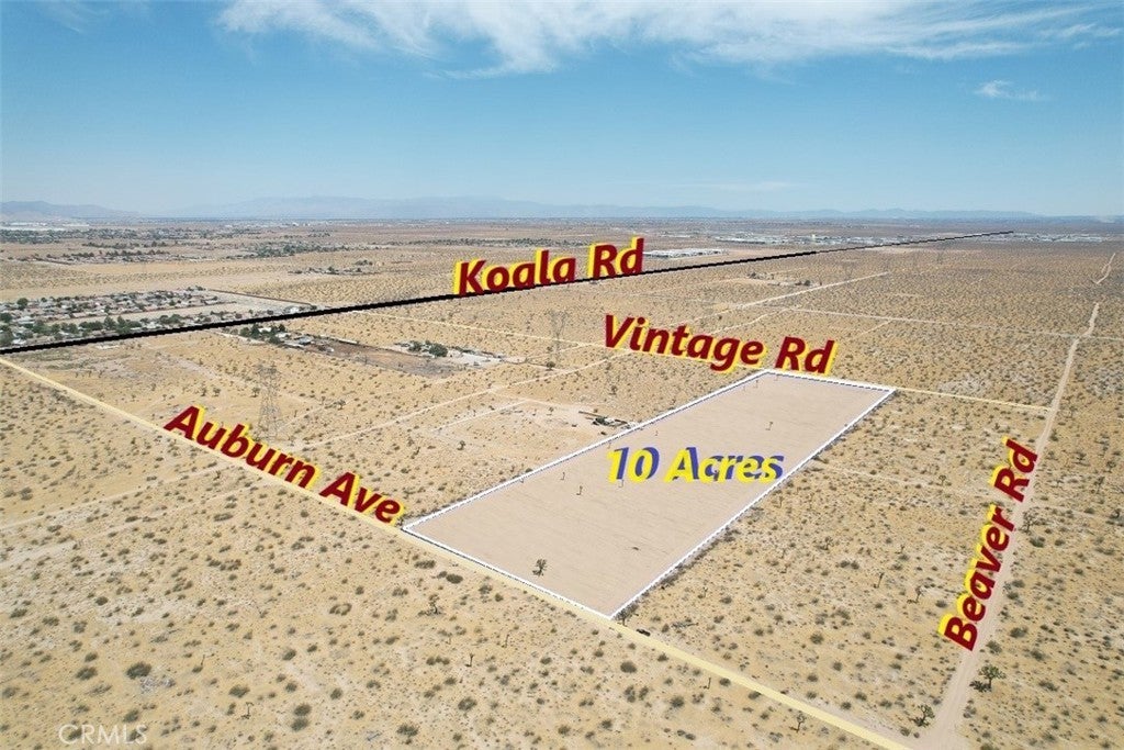 10 Acres rural land in the Adelanto CA area! Zoned Desert Living (DL-5)(1du/5 ac) With direct access off of paved Koala Rd, trough Vintage Rd, west of Koala Rd, land with endless possibilities, this property is only 2.2 miles from the 395 HWY, the parcel has a view of the beautiful desert landscape and the surrounding mountains, GPS Coordinates: ( 34.592452 -117.461130 ) Buyer to do their due diligence, Dotted lines are just estimated and not an exact property lines.