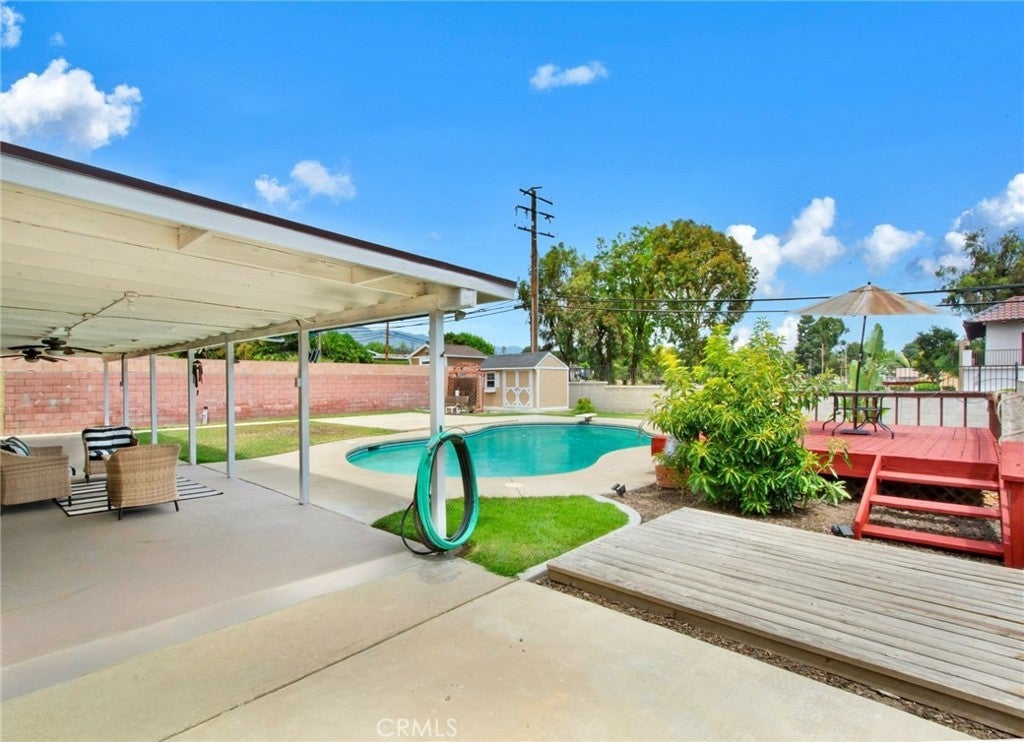 Single Story 4 bedroom 2 bath Pool home! Living room with brick fireplace. Bright dining room with French doors. Kitchen updated with new cabinets, granite countertops, pantry, lots of storage, window overlooking backyard and exterior door. An entertainers backyard has covered patio, in ground pool, sun deck, grass area, and storage shed. 9880 sq/ft level lot provides Plenty of room to add an AUD or Jr. AUD if desired. RV or other recreational parking behind gate. Upgrades include newer roof, updated kitchen and baths, duel pane windows, French and sliding doors, exterior updated and painted, newer concrete driveway and wrought iron gates. Centrally located with easy access to 210 & 10 freeways. Home is walking distance to Foothill Knolls STEM Academy of Innovation, San Antonio Regional Hospital, medical offices, parks, shopping, dining and transportation.