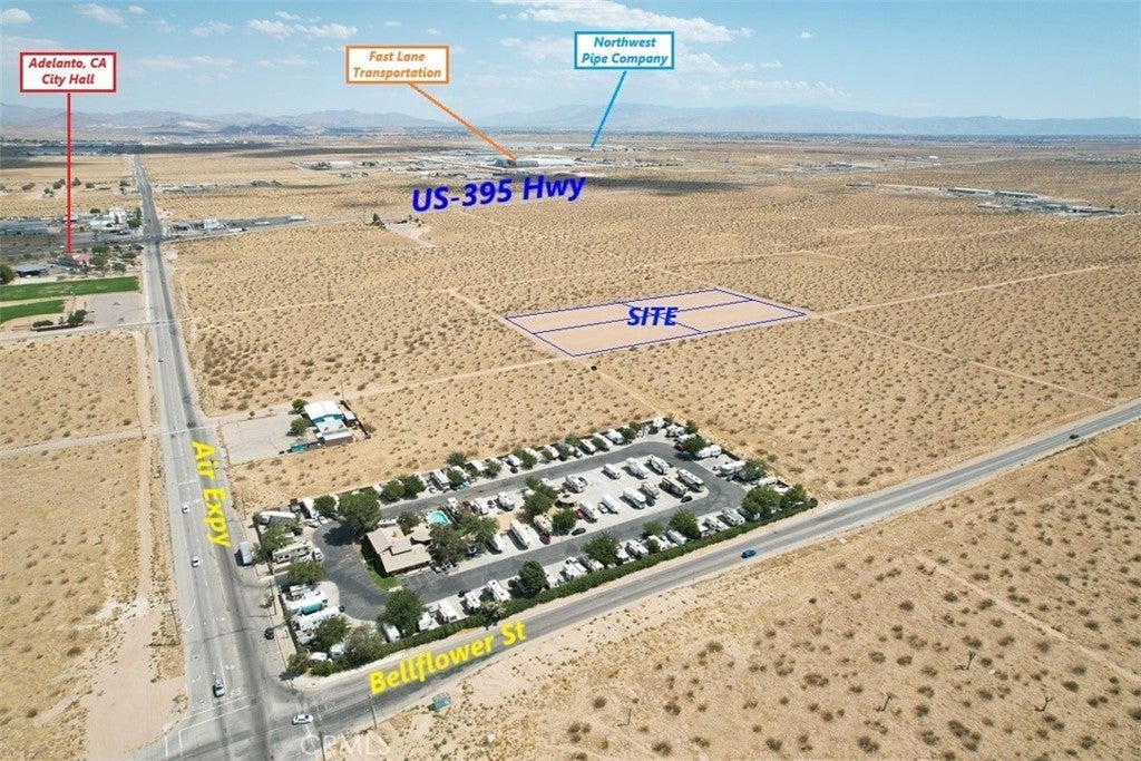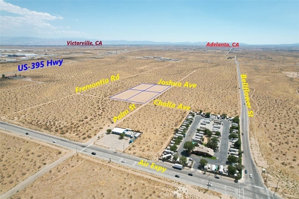 Investors and Developers take a look at these 4-acre property consisting of 4 parcels, 1-acre each parcel of flat land, located in a prime location projected for growth, currently zoned Mixed Use (MU)(12-18 du/pa in Adelanto, CA, utilities close to property: electricity about 300+/-ft east of the property on Fremontia Rd, sewer, Water, and gas is about 600+/- ft north of property on Air Expy, approximately frontage 275ft, length 600ft rectangular lot. Consisting of 4 parcels sold together (APN 0459-353-21-0000, APN 0459-353-22-0000, APN 0459-353-23-0000, and APN 0459-353-24-0000), located just 200+/-FT, 0.4mi. west from US-395 Hwy, about 2.5+/-miles southwest of the Southern California Logistics Airport (SCLA), close proximity to Northwest Pipe Company, Amazon, & Dr Pepper Snapple Co., (buyer and buyer’s agent to verify utilities for availability connections),Google maps coordinate to the sign on the northwest corner of the subject property are: 34.570056, -117.416083.Bring your offers.