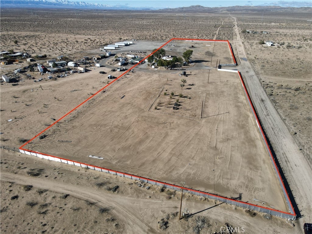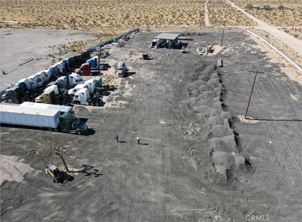 The property spans ten acres (435,600 square feet) and is in San Bernardino County with Rural Living RL-5 zoning. It features three water wells and one water tank surrounded by necessary fencing. Currently, the land is utilized to park semi-trucks.