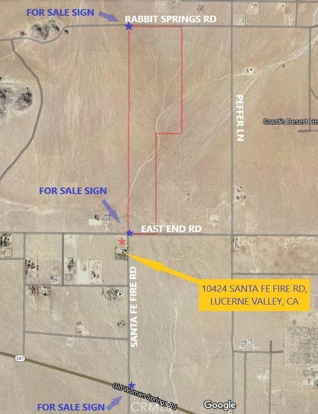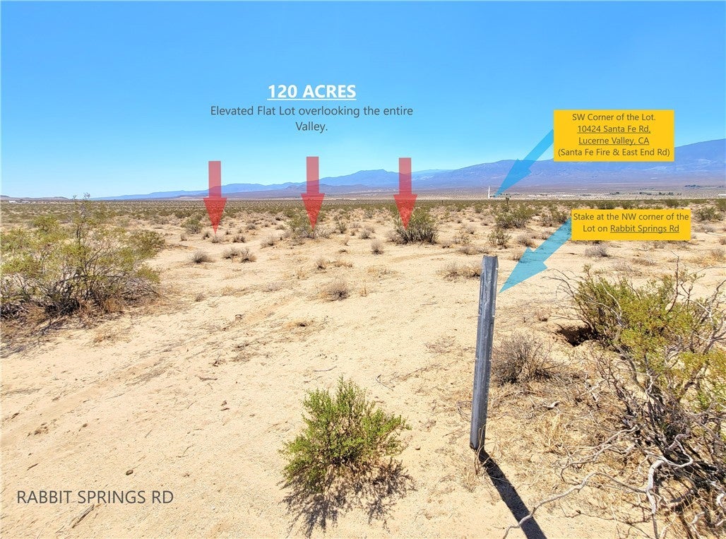 LAND FOR LEASE! IDEAL FOR SOLAR FARM, RECREATIONAL, AGRICULTURAL OR ANY OTHER USES*** ***DRIVING DIRECTIONS: USE ADDRESS: 10424 Santa Fe Fire, Lucerne Valley, Ca *** AVAILABLE MOJAVE LAND PORTFOLIO CONTAINING 2 PARCELS OF FLAT AND VIEW LAND FOR LEASE TOTALLING 120 ACRES WITH POWER*** (1.-APN: 0449-541-14 IS 80 ACRES AND 2.-APN:0449-541-31 IS 40 ACRES) IN LUCERNE VALLEY, CA. VALLEY AND CITY VIEWS. PRIME ACCESS TO LAND VIA OLD WOMAN SPRINGS RD WHICH IS ONLY 0.7 MILES FROM THE SUBJECT LOT. CAN BE ACCESS THRU SEVERAL STREETS. BOTH LOTS ARE TOGETHER (ONE BEHIND THE OTHER) LOTS GO FROM EAST END RD ALL THE WAY TO RABITT SPRINGS RD. THIS IS ONE OF THE BEST LAND PORTFOLIOS IN THE AREA. LAND IS RAW, THERE ARE NO UTILITIES ON SITE, BUT ALL NEAR BY. ALL DEVELOPMENT INQUIRIES SHOULD BE DIRECTED WITH THE COUNTY OF SAN BERNARDINO. ZONING IS "RL" (RURAL LIVING AND INCLUDES SEVERAL RESIDENTIAL, COMERCIAL AND INDUSTRIAL USES) POWER POLE PRESENT AT PROPERTY (BUYER TO VERIFY) ***LEASE RATE DEPENDS ON HOW MANY ACRES ARE NEEDED***