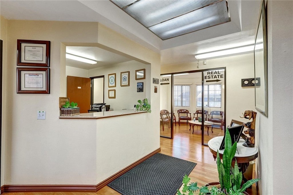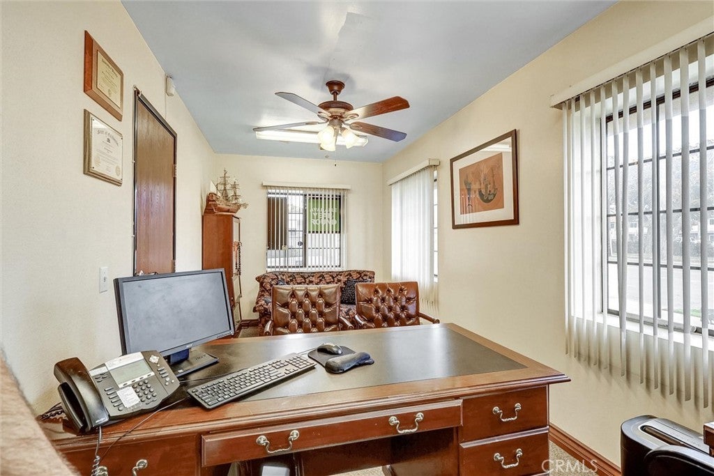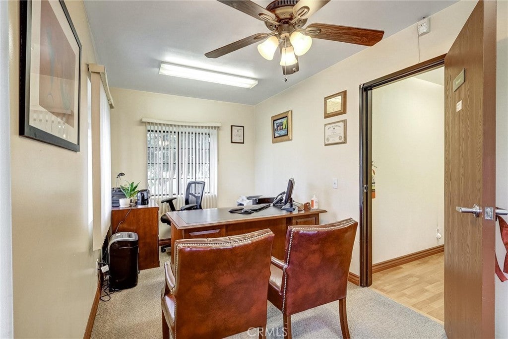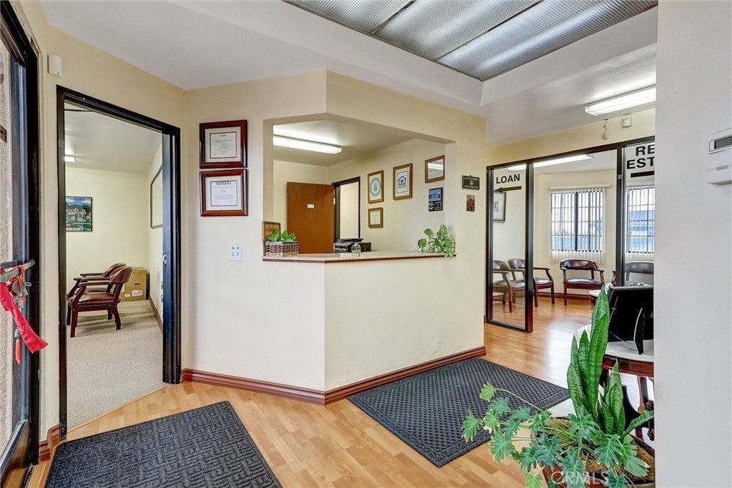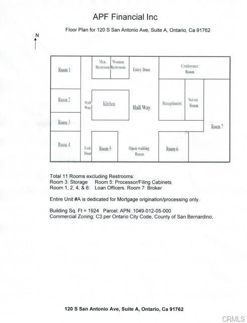 Location, Location, Location. Well maintained stand alone office building with great visibility in the growing City of Ontario. Building has 9 separate office rooms, beautiful receptionist's area, conference room, waiting room, two bath rooms and kitchen . Property has been freshly painted, wood laminated floors and landscaped. Ideal for Office/Medical/Dental/Real Estate/Escrow/HealthCare. Well lit Parking lot in front and back of property.