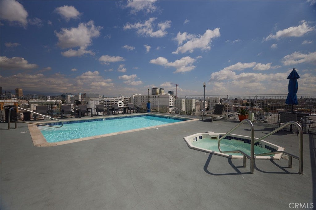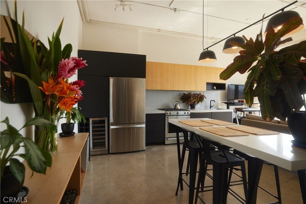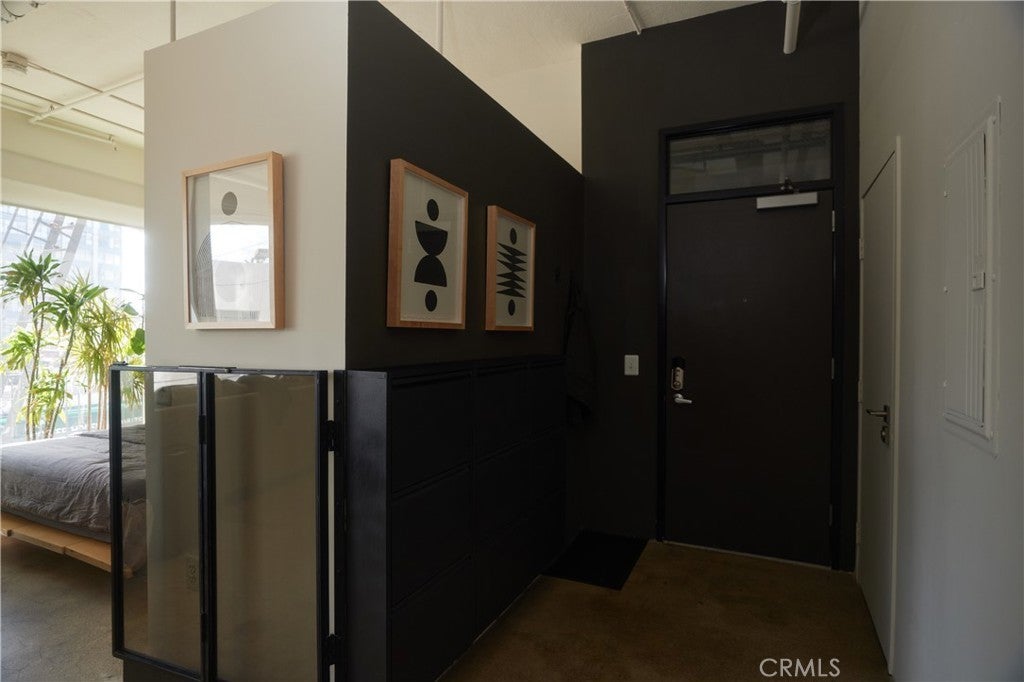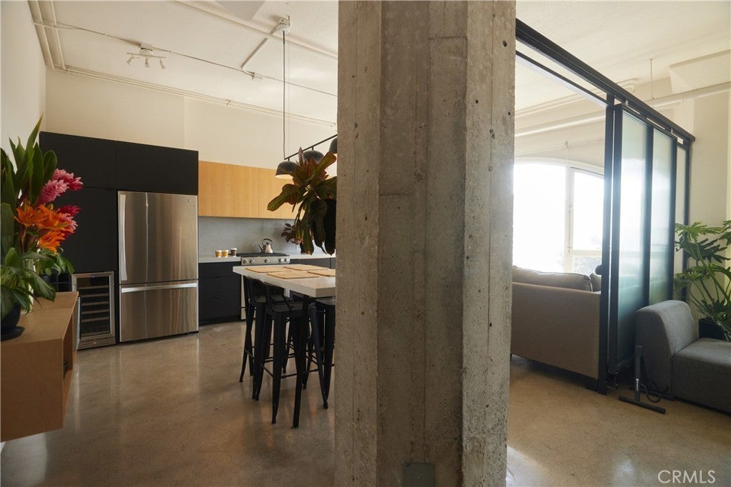 In the historic gothic revival style Textile Center Building built in 1926, this light-filled, sophisticated classic loft in the vibrant community of the fashion district has excellent access to everything downtown Los Angeles has to offer. The home has been expertly remodeled with an architect’s eye incorporating a gorgeous steel and glass panel separating the space into distinct sleeping and living areas. Polished concrete floors and curved original vintage floor to ceiling windows give the space the unique character and charm any design-minded enthusiast would appreciate. A custom build breakfast bar within the recently renovated minimalist kitchen featuring designer lighting from A+R, completes the picture in this beautiful turn-key loft. A rare assigned parking spot, as well as a separate storage area for all of your extras is also included, but you’ll rarely need a car with a 98 walk score in this neighborhood. Within minutes you’ll find great coffee at Civil Coffee or Verve, amazing local food at spots like Sonoratown Tacos and Holy Basil Thai. The LA Flower Mart is right across the street plus conveniently located to Whole Foods, Poppy and Rose, Grand Central Market and many, many other fantastic restaurants, bars and venues. Huge plus is the building is located within the Santee Village which allows Textile Center loft residents exclusive access to many amenities including several rooftops to watch fireworks, rooftop pool and hot tub, fitness center, and BBQ facilities. The Textile Center Building has been recognized as a registered historic building at both the local and national levels, and with this comes the Mills Act approval which means big savings on property taxes. Welcome to the best of modern, walkable downtown living!