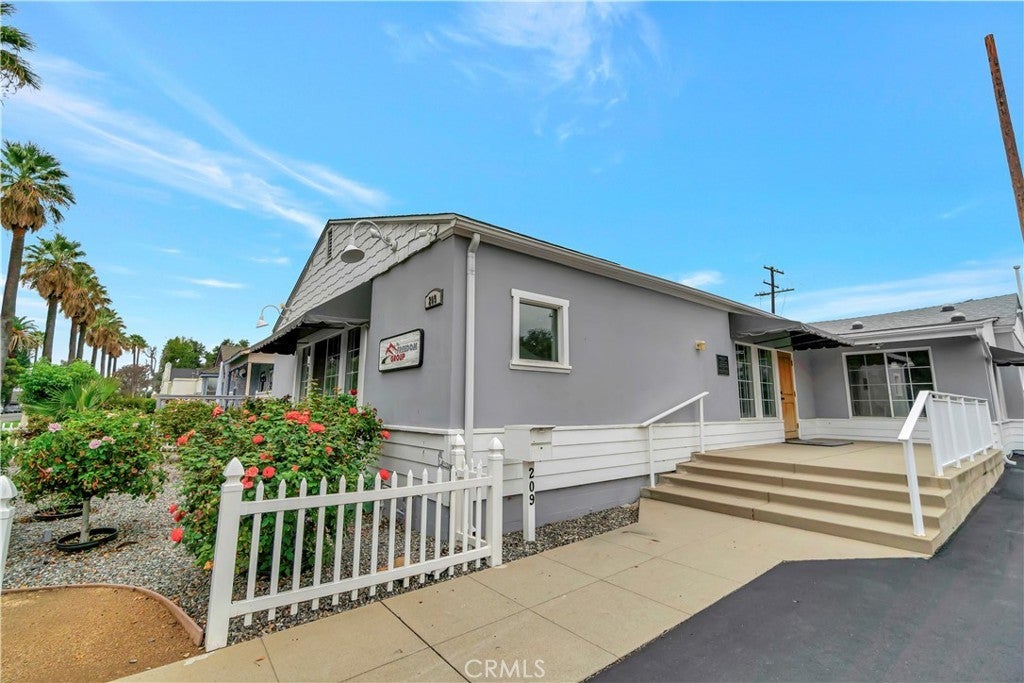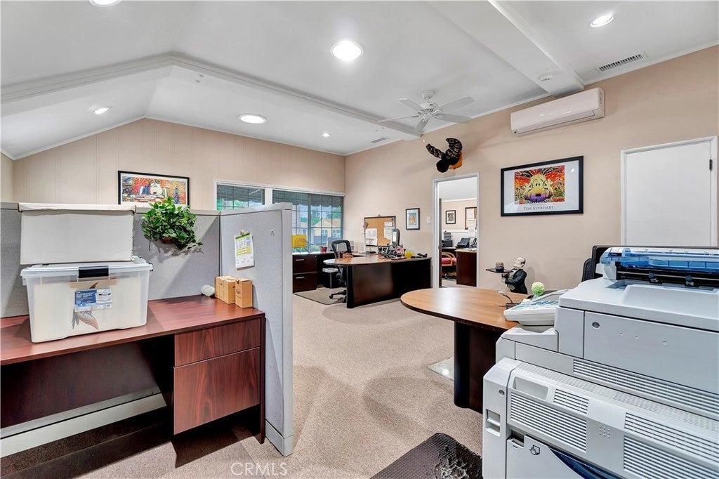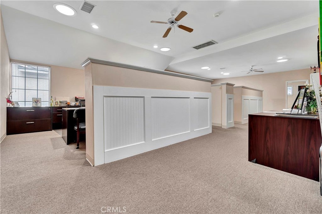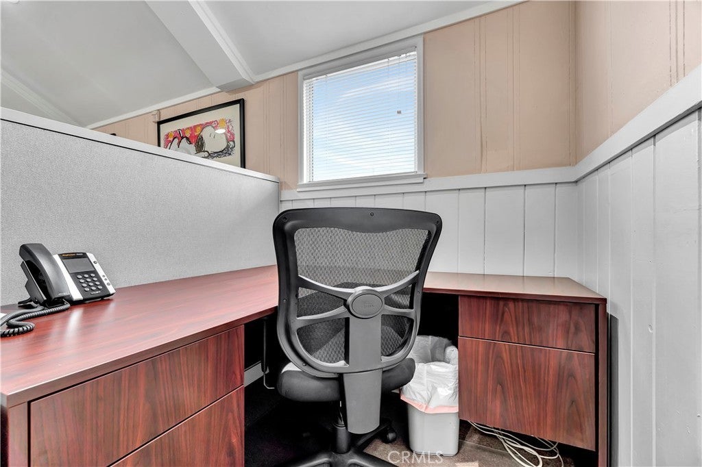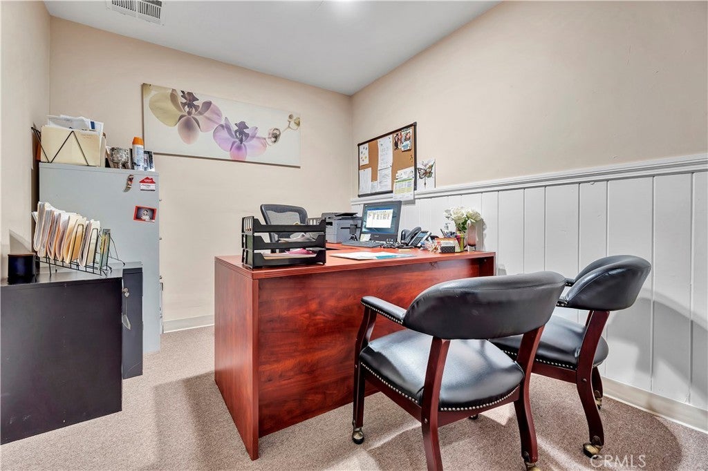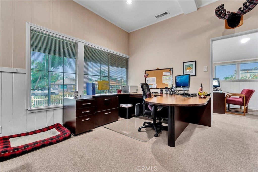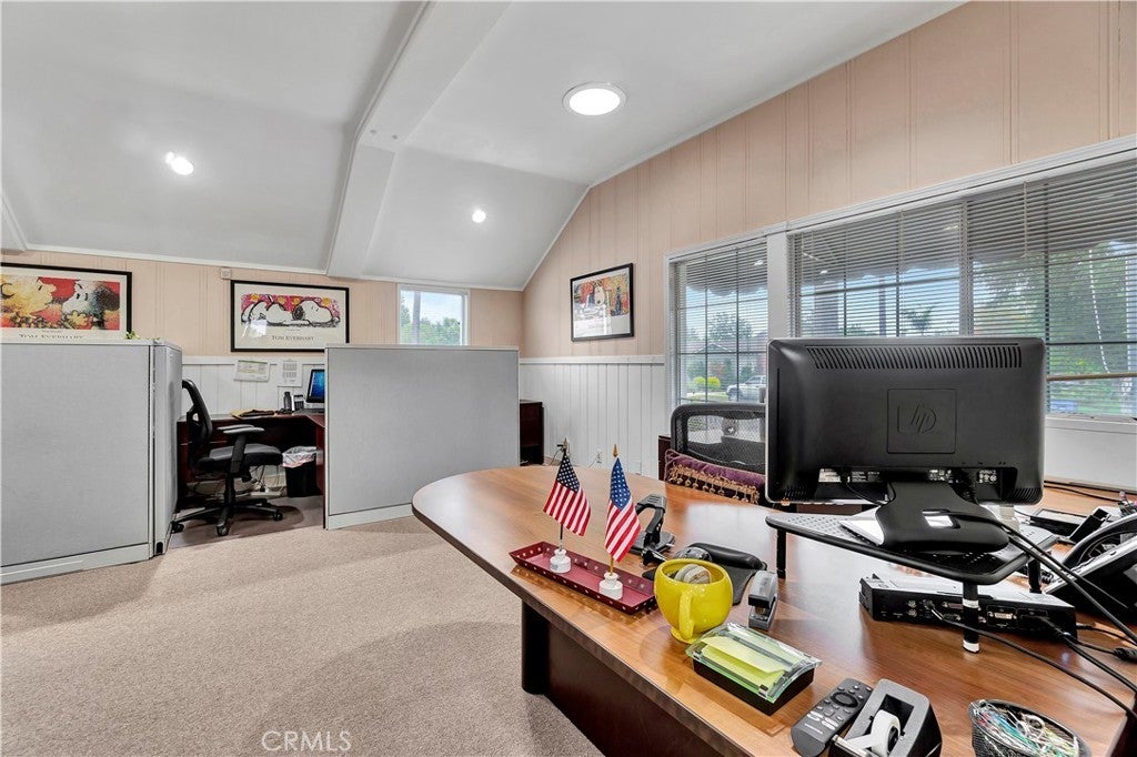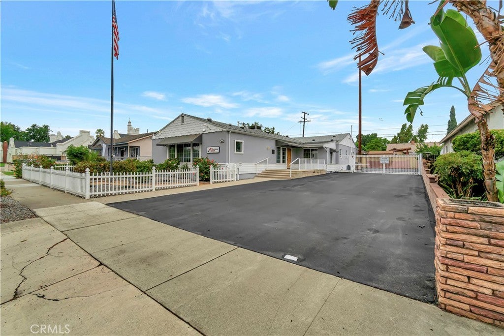 Unique opportunity for your office. Property is commercial located in a residential neighborhood. Ideal for a professional office such as an attorney, accountant, real estate agency, lending business, or other business needing an office environment. There are 3 private offices, 4 semi-private offices, and a bullpen area. The foyer is very inviting with a dark wood floor. Two available conference rooms, an expansive supply storage area, 2 bathrooms, and a full kitchen with dishwasher, oven-range, and a lot of cabinet space. There is an available detached 2-car garage that can be used for extra storage or car parking. The electronic gate opens to a parking area that can handle 4 cars (not counting the garage). The driveway can also park 2 cars without disturbing access to the rear parking. The first thing your clients/customers will notice is the extra tall flagpole and the beautiful rose garden at the entrance. There is ample night time security lighting, and most of all you will notice how quiet the neighborhood is. This is a beautiful property that you will be proud to call your business home.