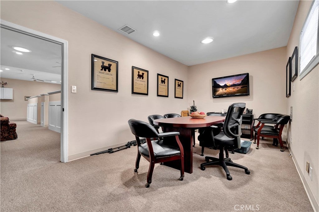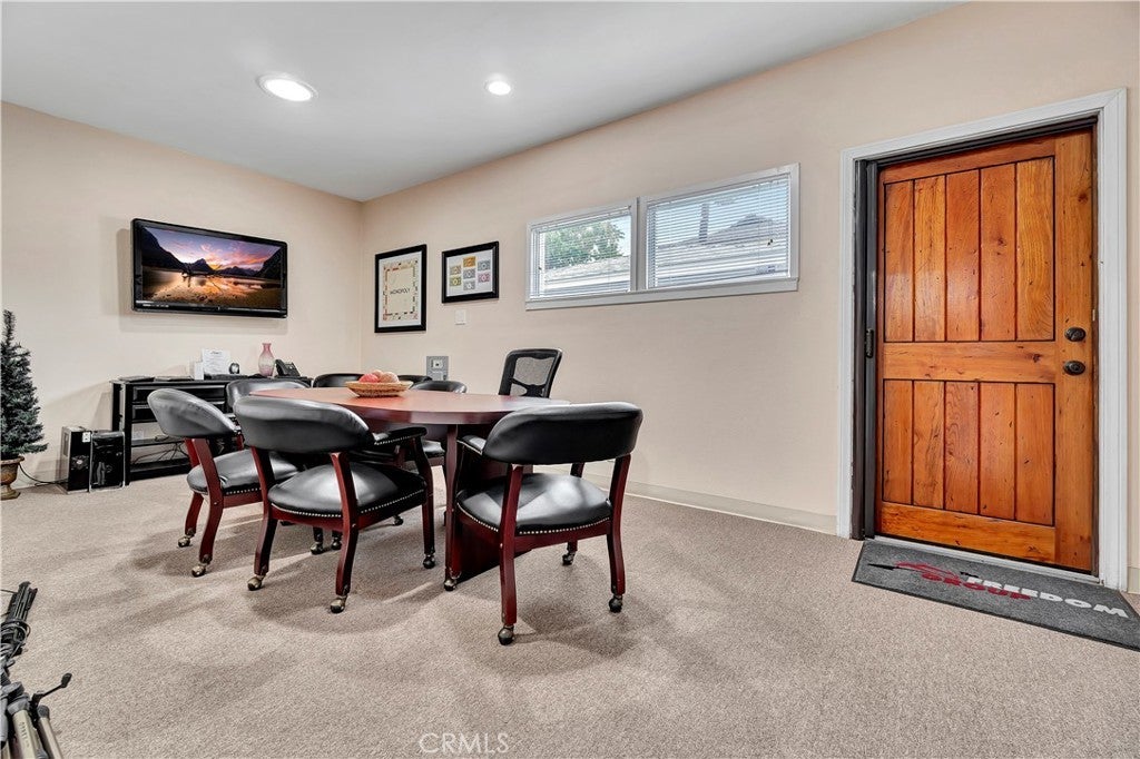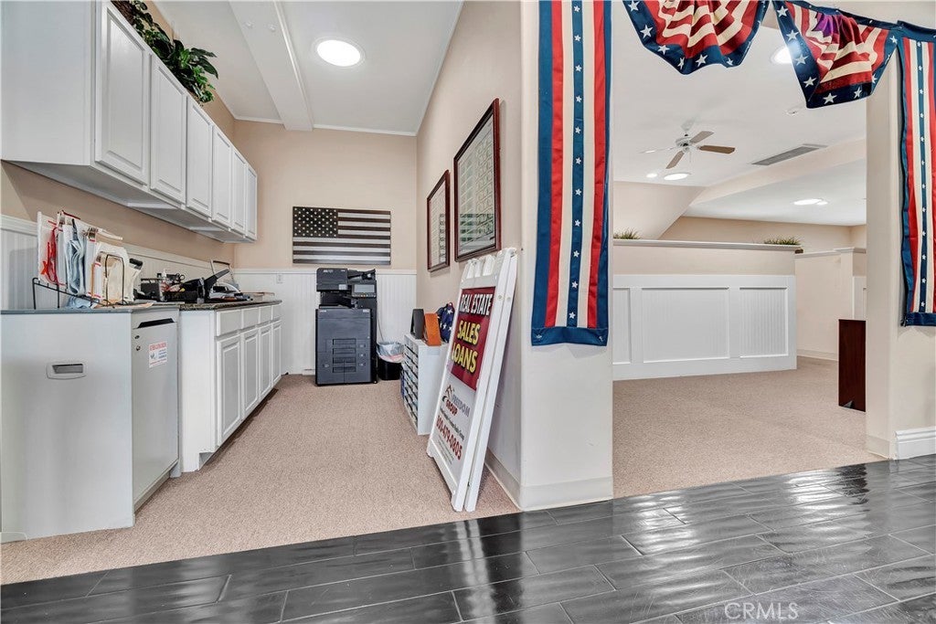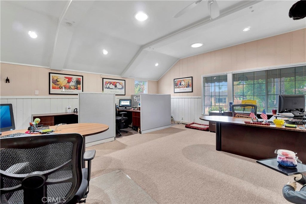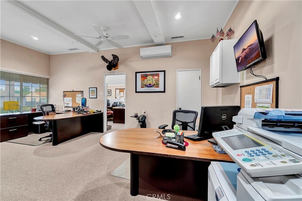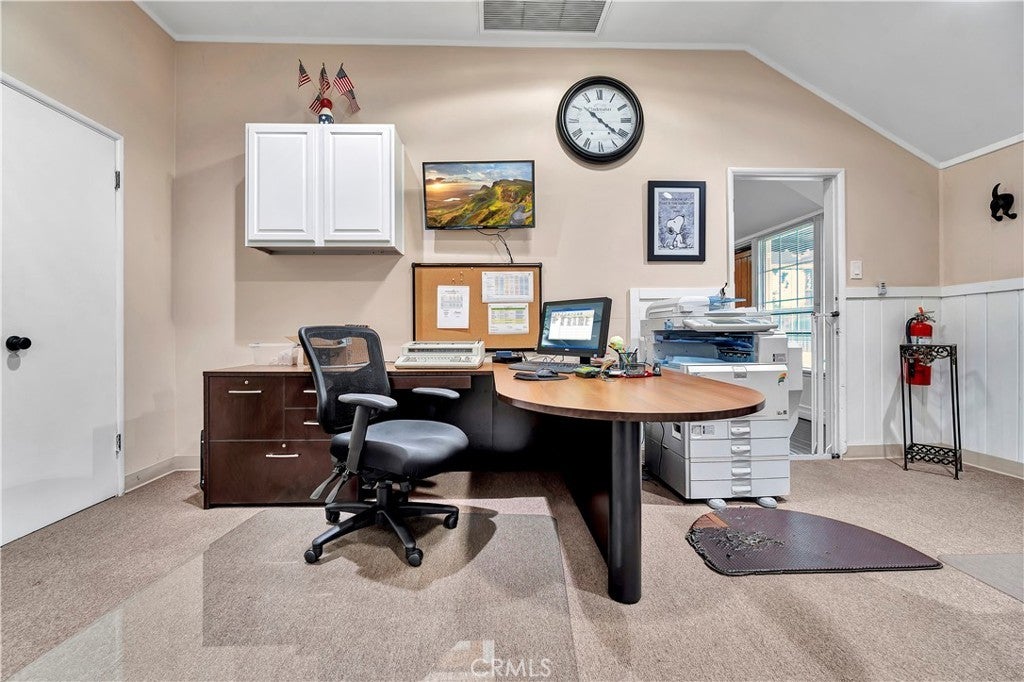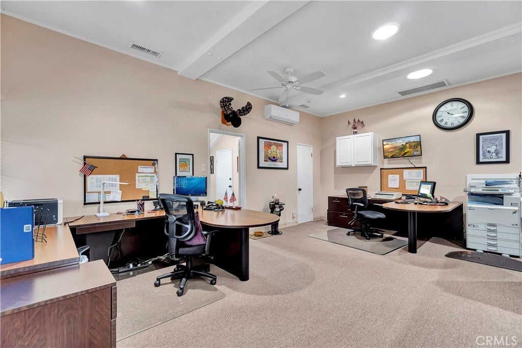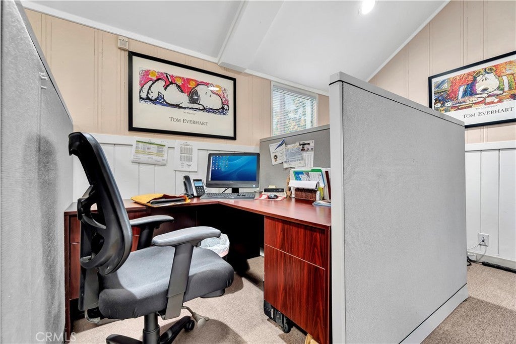Unique opportunity for your office. Property is commercial located in a residential neighborhood. Ideal for a professional office such as an attorney, accountant, real estate agency, lending business, or other business needing an office environment. There are 3 private offices, 4 semi-private offices, and a bullpen area. The foyer is very inviting with a dark wood floor. Two available conference rooms, an expansive supply storage area, 2 bathrooms, and a full kitchen with dishwasher, oven-range, and a lot of cabinet space. There is an available detached 2-car garage that can be used for extra storage or car parking. The electronic gate opens to a parking area that can handle 4 cars (not counting the garage). The driveway can also park 2 cars without disturbing access to the rear parking. The first thing your clients/customers will notice is the extra tall flagpole and the beautiful rose garden at the entrance. There is ample night time security lighting, and most of all you will notice how quiet the neighborhood is. This is a beautiful property that you will be proud to call your business home.
