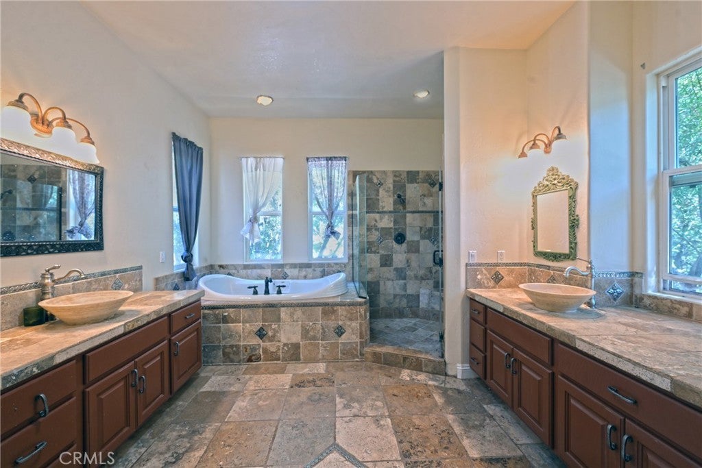 Owner Will Carry! Seller is open to creative financing options, including lease option, owner carry back, or purchase subject-to existing loan. This beautiful, private home sits on nearly 10 acres of serene, natural surroundings—perfect for buyers seeking peace and space away from the hustle and bustle. The open floor plan features soaring 20’ ceilings in the Great Room, creating a bright and spacious living area. The main residence includes an attached 2-car garage, plus a detached 2-car garage with a permitted ADU—ideal for guests, rental income, or multigenerational living. The fenced backyard features a soothing waterfall and plenty of room for a pool or outdoor entertaining. Inside, the spacious primary suite offers a 4-piece bathroom and an oversized walk-in closet. All bedrooms are generously sized, with a Jack & Jill bathroom connecting the third and fourth bedrooms. A rare opportunity to own usable acreage with flexible financing options!