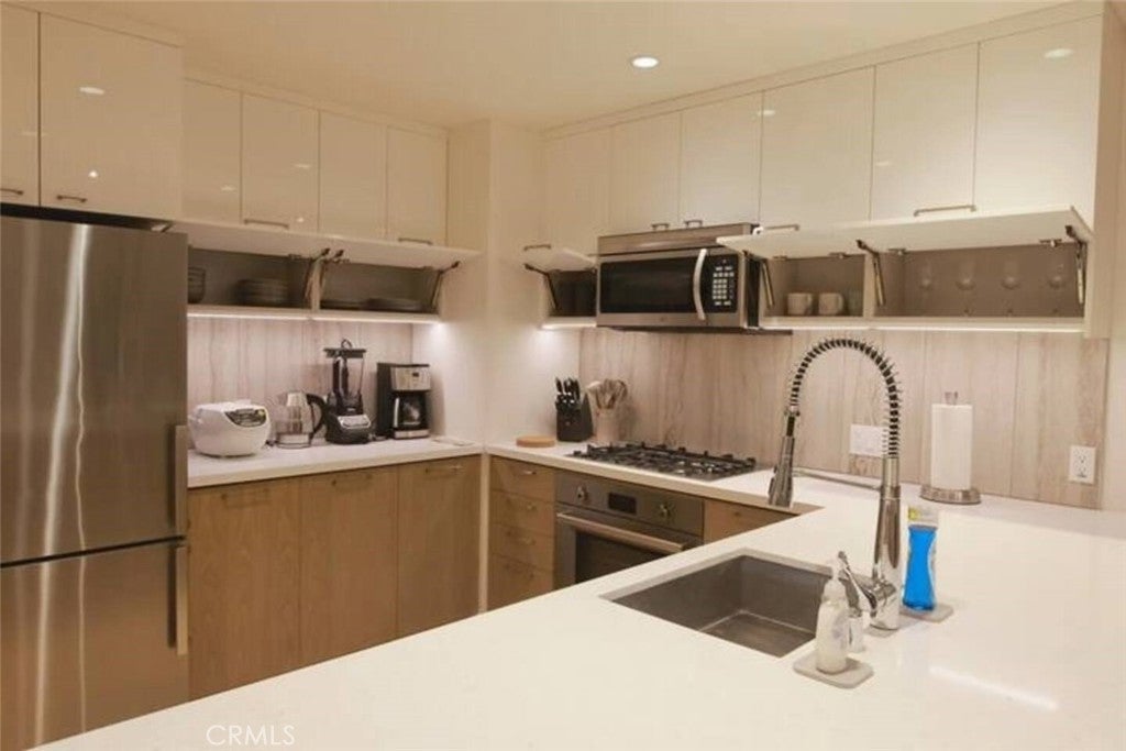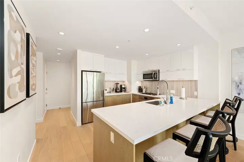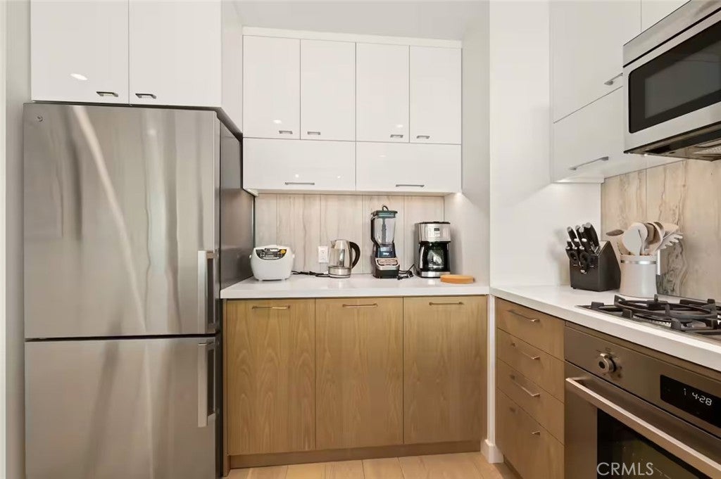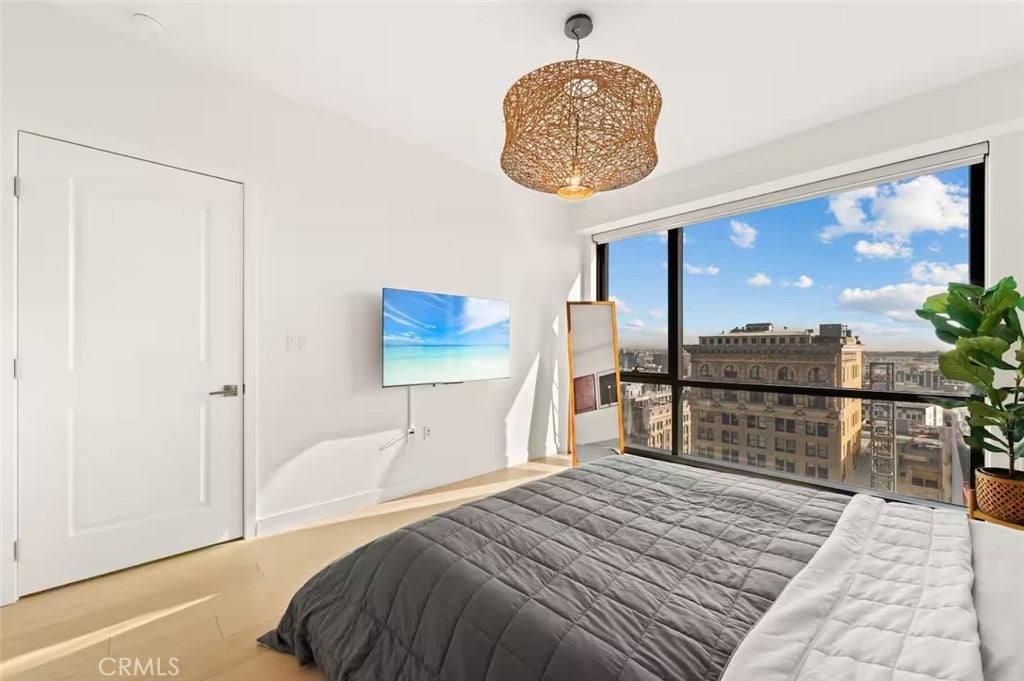 This Japandi style one-bedroom condo in Perla on Broadway provides a luxurious, relaxing retreat in the heart of downtown LA. This unit comes fully equipped. All you need to bring is your luggage, groceries and favorite ingredients. Unit includes high speed internet, flat screen smart tv, in-unit front-loading Bosch w&d combo, and high-end kitchen appliances. The building also comes with swimming pool, hot tub, pool table, gym, theater rooms!