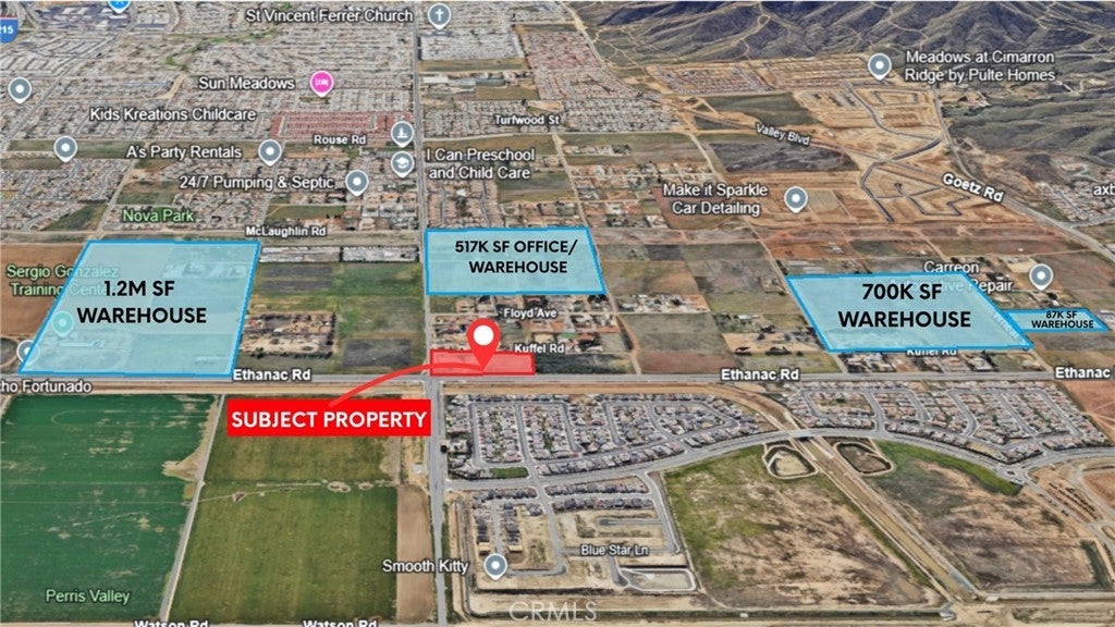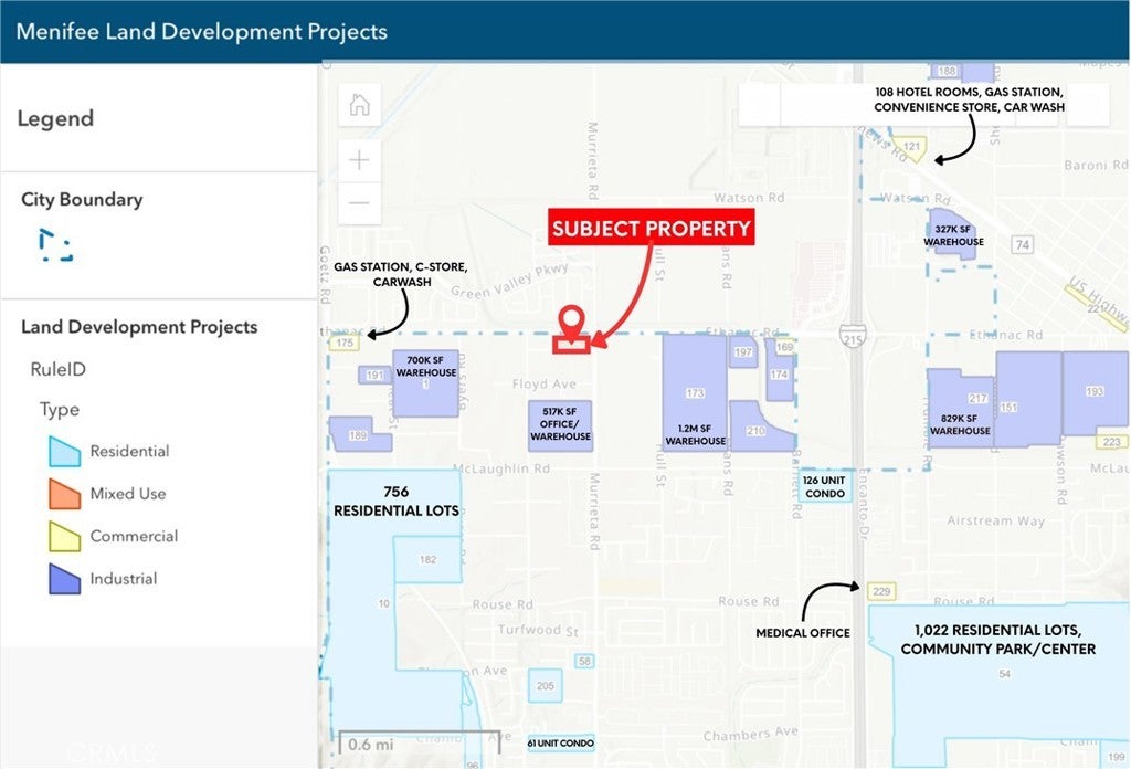 NOT ACTUAL PRICE - PLEASE SUBMIT YOUR PROPOSAL INCLUDING your USE and RATE and TERMS for 1 - 4 Acres Available For Ground Lease. Watch aerial video! Prime commercial land or heavy industrial land development opportunity strategically located at the intersection of Ethanac Rd. and Murrieta Rd. in Menifee, just 4 blocks off Exit 14 on I-215 with large retailers like Home Depot, Starbucks, AutoZone, Winco Foods and more. With proximity to the nation's busiest port system, Ontario Airport, UPS & FedEx Ground Hubs and BNSF, this location offers unparalleled visibility and accessibility. The Economic Development Corridor - Northern Gateway (EDC-NG) zoning positions this property as a key player in a fast-growing warehousing and heavy industrial area of Menifee. Planned as an employment hub, the city welcomes visionary owners to spearhead business park development and industrial ventures, creating jobs and connectivity to regional transportation corridors. Benefit from the City of Menifee's $130 million investment in capital improvements, enhancing roads and traffic circulation. The planned extension of Ethanac Rd. to connect to CA-74 will significantly elevate the traffic count to 30,000+, bringing even more visibility to this major intersection. Nearby are the Perris Logistic Centers with 4 million sq ft of rentable space, and a 28 acre industrial warehouse facility a block away, Seasons by Green Valley Ranch new construction housing development is across the street, as well as hundreds of current and proposed corporate neighbors in Perris, Moreno Valley and Menifee. Improvements on the land include a 1,972 sq ft single story home with 4 beds and 2 baths. The current tenant is very clean and cooperative, pays on time and would like to stay and continue taking good care of the property until it is ready for development. Utilities include water, gas, and electricity. Sewer is available at Murrieta Road and Kuffel Road and just needs to be connected. Don't miss your opportunity to be a part of shaping Menifee's flourishing economic environment!