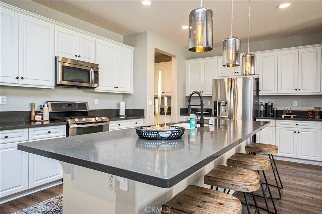 Welcome to this exquisite 3 bedroom and loft home that looks and feels like a model home. Designed for both comfort and style, this is the perfect home for entertaining and will be sure to impress your pickiest buyers. Step in to discover an open concept layout with high end finishes and tons of upgrades throughout. The chef's kitchen boasts sleek countertops, modern cabinetry and a massive island, perfect for your guests to gather around. The spacious dining area flows seamlessly to the beautiful living area. Upstairs you'll find the primary suite with a spa like ensuite and a massive walk-in closet. The loft is an ideal space for a home office, playroom or media space. This energy efficient home features paid off solar. Located in a prime spot near major freeways and shopping.