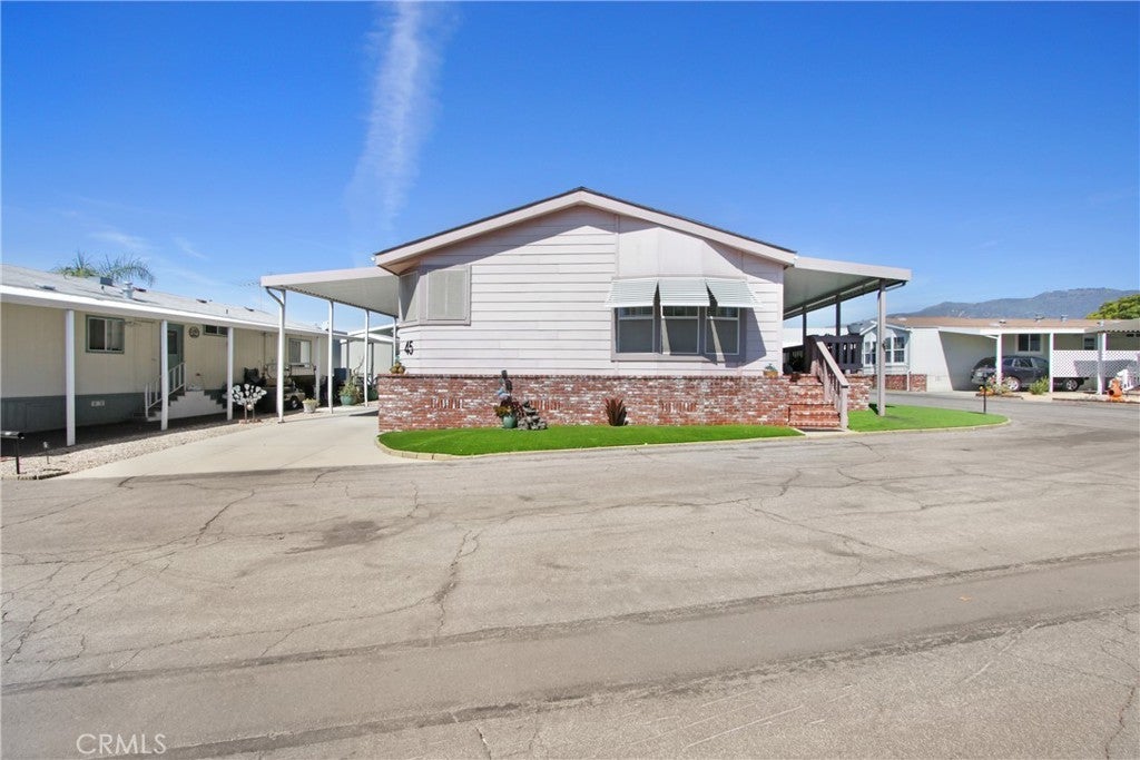 Beautiful 2-Bedroom Skyline Double-Wide Home in The Fountains – A Premier 55+ Community! This charming home includes a versatile third room that can be used as a bedroom, den, craft room, or home office. Ideally located on a corner lot, it boasts a spacious, lengthwise covered porch with a north-facing view of the stunning San Gabriel Mountains. Lovingly maintained and in move-in ready (turnkey) condition, the home offers an open and airy floor plan with high ceilings. The large living room features a gas fireplace for cozy evenings, and a bright skylight fills the space with natural light. A sunroom/sitting area with plantation shutters and three oversized windows enhances the charm. Additional highlights include: Dining room and den/office with elegant French doors Kitchen with Corian countertops, wood cabinetry, and ample storage Wood-style laminate flooring throughout, with carpeted bedrooms Ceiling fans in multiple rooms Guest bathroom with walk-in shower Primary bathroom with a Safe Step walk-in spa tub and skylight Dedicated laundry room with access to back stairs, carport, and storage shed with shelving Low-maintenance turf yard The Fountains is a beautifully maintained, gated 55+ community with fantastic amenities, including a clubhouse with banquet hall, full kitchen, swimming pool, spa, shuffleboard, gym, dog park, and more. Enjoy a vibrant social calendar with weekly events, holiday celebrations, and community gatherings. Additional Details: Gated RV parking available 360° picture tour available! Home is on the local property tax roll New space rent: $1,520/month (Seller will pay 3 months of rent to new buyer!)