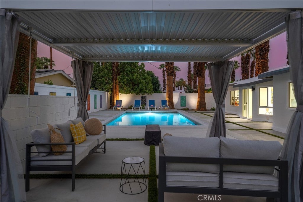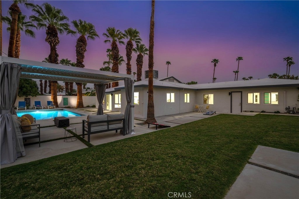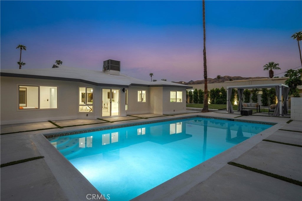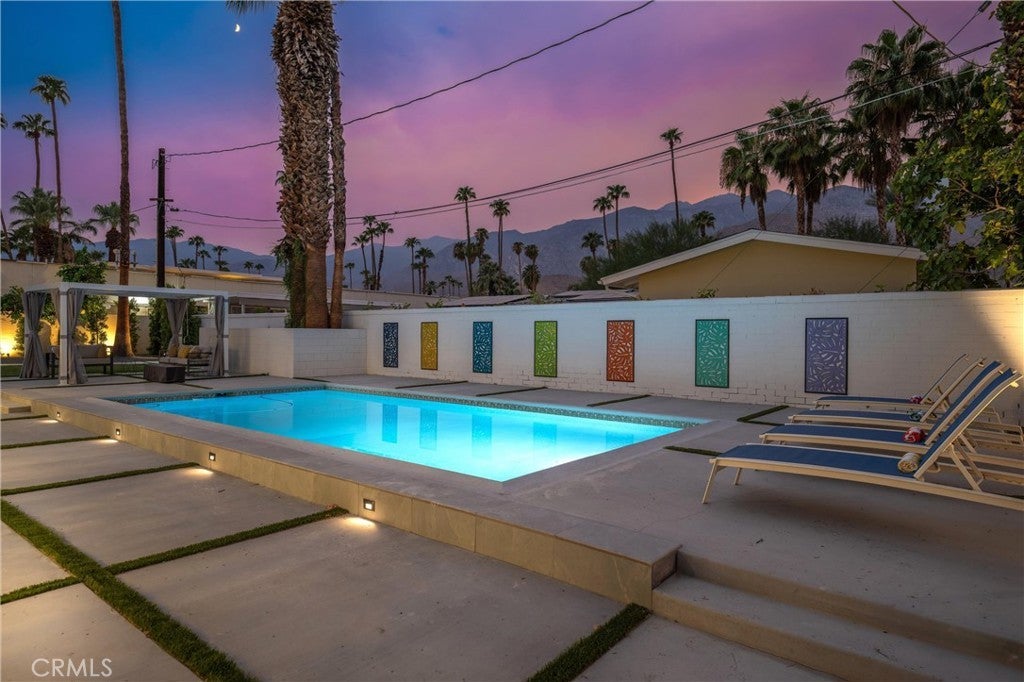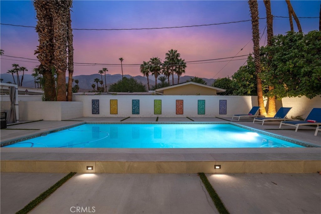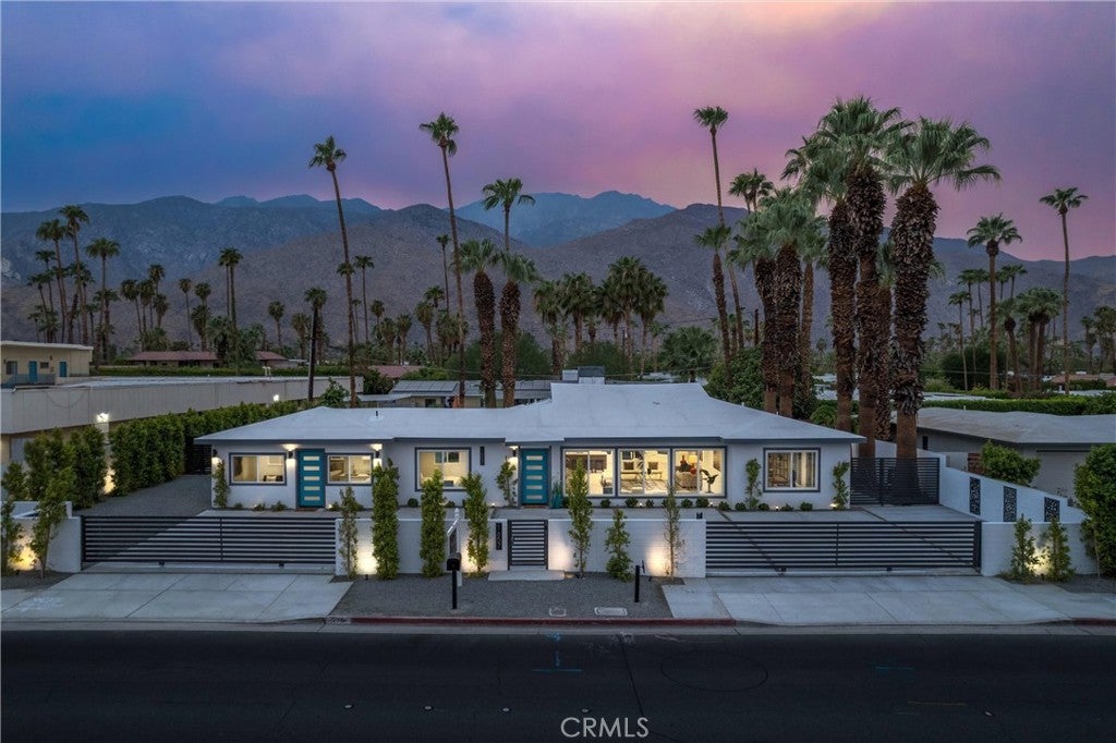 Welcome to Sunrise Estate! Located in the HIGHLY Desired Deepwell Estates Area, a well-established neighborhood with a beautiful, welcoming, and vibrant community, rich history, and numerous celebrity residents over the years. This fully Private Gated Lot is PERFECT for Family living or Short Term Rental Income. This 3 Bedroom, 2 Bath Main House PLUS an attached 1 bedroom, 1 bath Guesthouse w/Private entry is complete with its own kitchen & living area. As you enter this fully Remodeled Mid-Century home, you'll enter through the Foyer to a Quiet interior with double paned windows into an open Spacious Entertainment Dining & Living Areas. The Main House Features a Full Gourmet Kitchen with Quartz Countertops, an Island and Stainless Steel Appliances. A Master Bedroom w/large walk-in closet and fully equipped en suite bathroom. The second bath has an additional entrance to the backyard. From the Backyard you can see Stunning West Mountain Views, where you will enjoy a Gorgeous Private Pool/Fire Pit area. This home has been upgraded with new imported ceramic wood plank flooring, new plumbing, new electrical, new roof, new insulation, new lighting, new windows, doors and outdoor shower. The location of this home is within a bicycle ride of downtown. Palm Springs is also nearby Eco walking trails and close to the city nightlife.