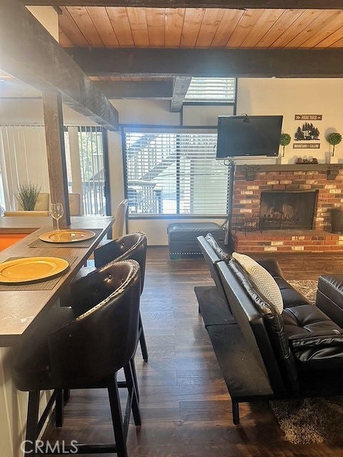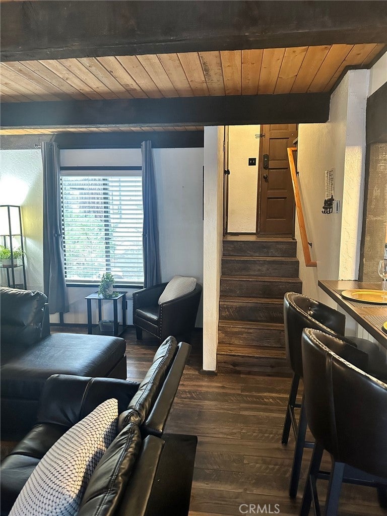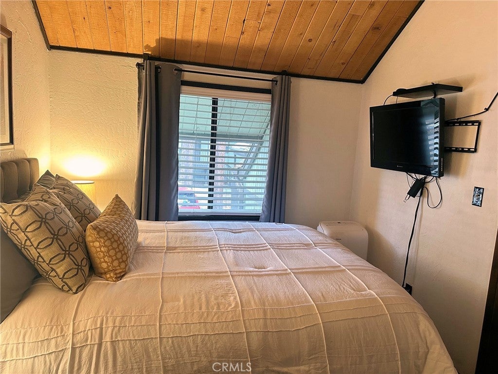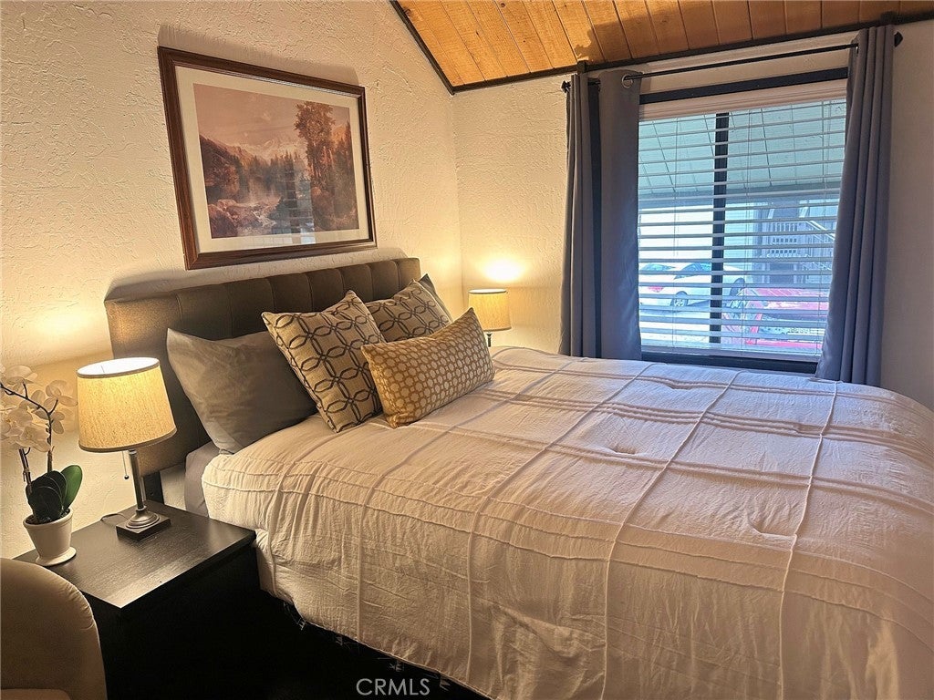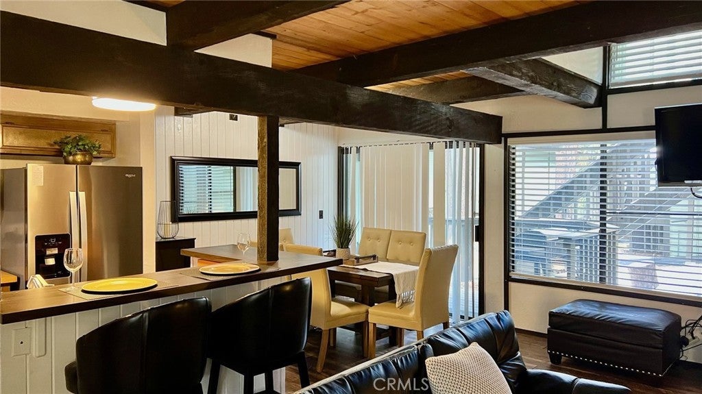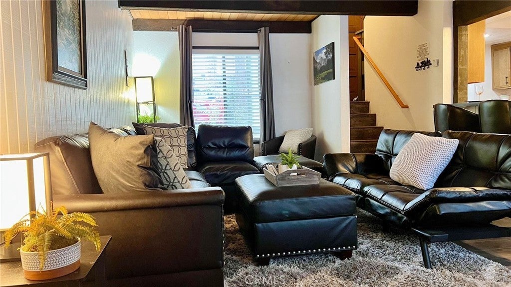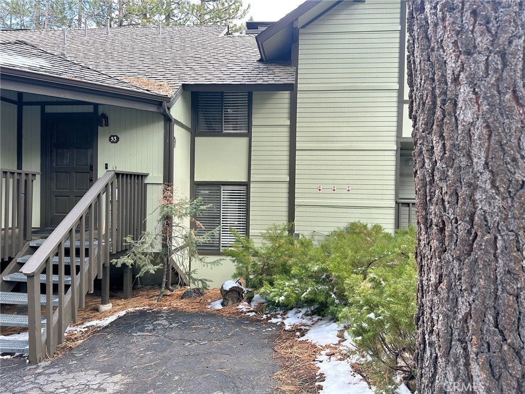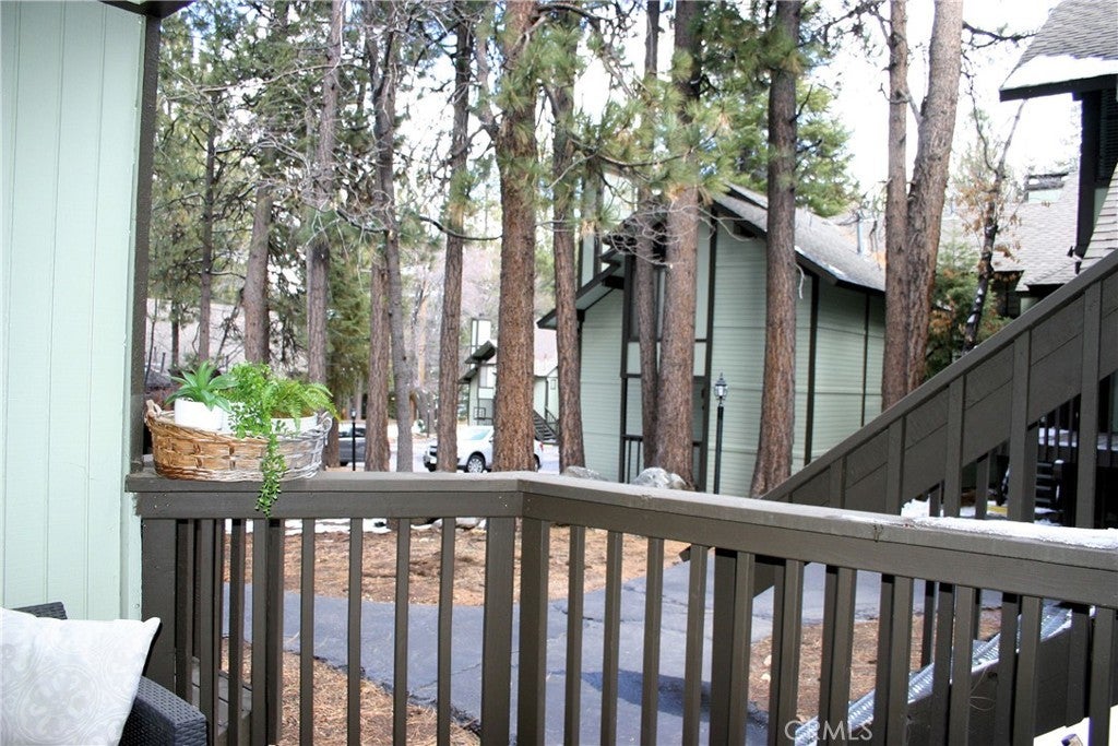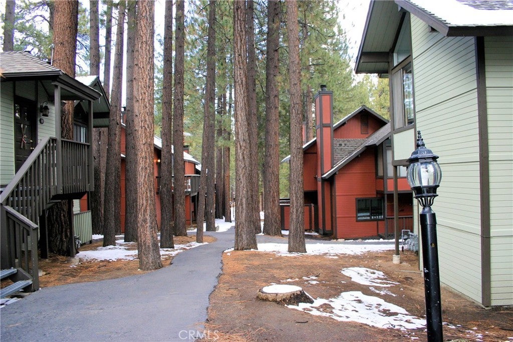 LOCATION LOCATION LOCATION!!! Mountain living at its best! Skiing, Snowboarding, Mountain Biking, Hiking, as well as just relaxing are the best part of living in the Escape Community. No driving necessary, just WALK to the Snow Summit Resort where you will enjoy the many winter and summer activities. The unit is located in the rear of the complex for added privacy and convenience to the ski resort. Great rental potential as well for investors. Weekenders LOVE to rent in this complex!!! This home has great quality wood flooring on the main level. Beautiful wood high-beamed ceilings give it a modern rustic feeling as it appears open and airy with great views of the beautiful trees and blue sky from all of the rooms. Amenities include a stackable washer and dryer in a closet enclosure away from the living area. Central heating and a gas starting fireplace keep you warm in the winter months while there are cooling units for the warmer months. A lot of attention to details in this home. The living room has a pull out sofa bed too. The sleeping accommodations allow for many people staying in the home or a plus for short term rentals. It is tastefully decorated and furnishings are included adding great value. The deck is wonderful for barbeques and outdoor relaxation. Another plus is the convenient premium parking spot next to the home. All of the grounds are beautiful, and very well maintained making it great for leisure walks or bike riding. Perfect for outdoor living and enjoyment. It is within short driving distance to all of the awesome amenities that make Big Bear Lake a highly desired place to visit and live. Truly a great property in a prime location. Onsite property manager. Turnkey ready! Don't pass up the opportunity to make this home your own while it is the lowest priced unit in the complex. Has awesome rental income if you are looking for an AirBnb investment. It is rented throughout the year. Same floor plan unit sold this year for $600,000! Must see to truly appreciate.