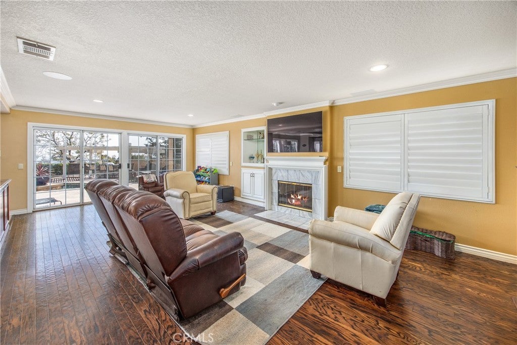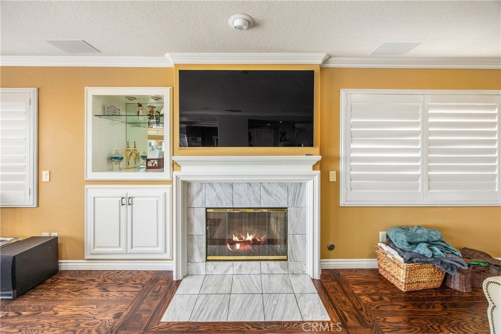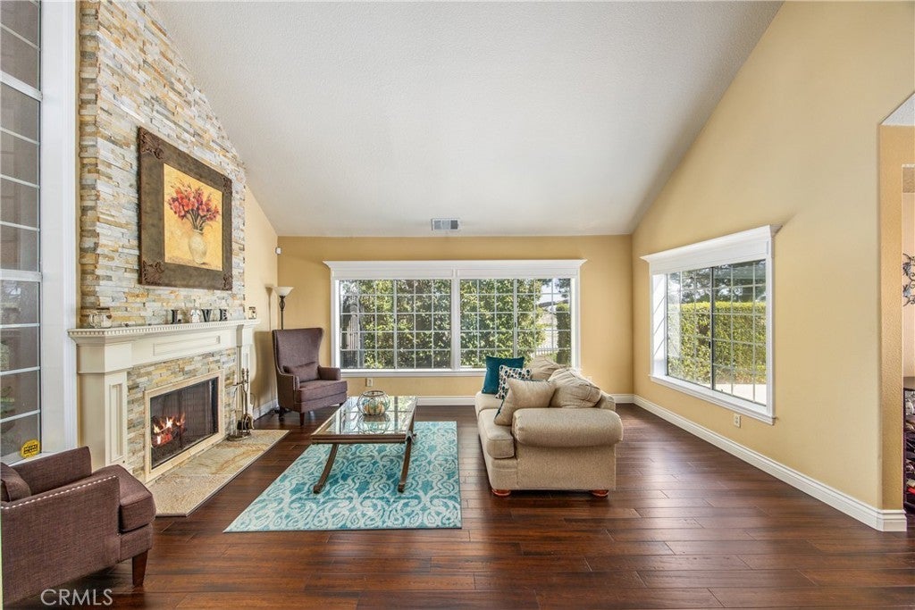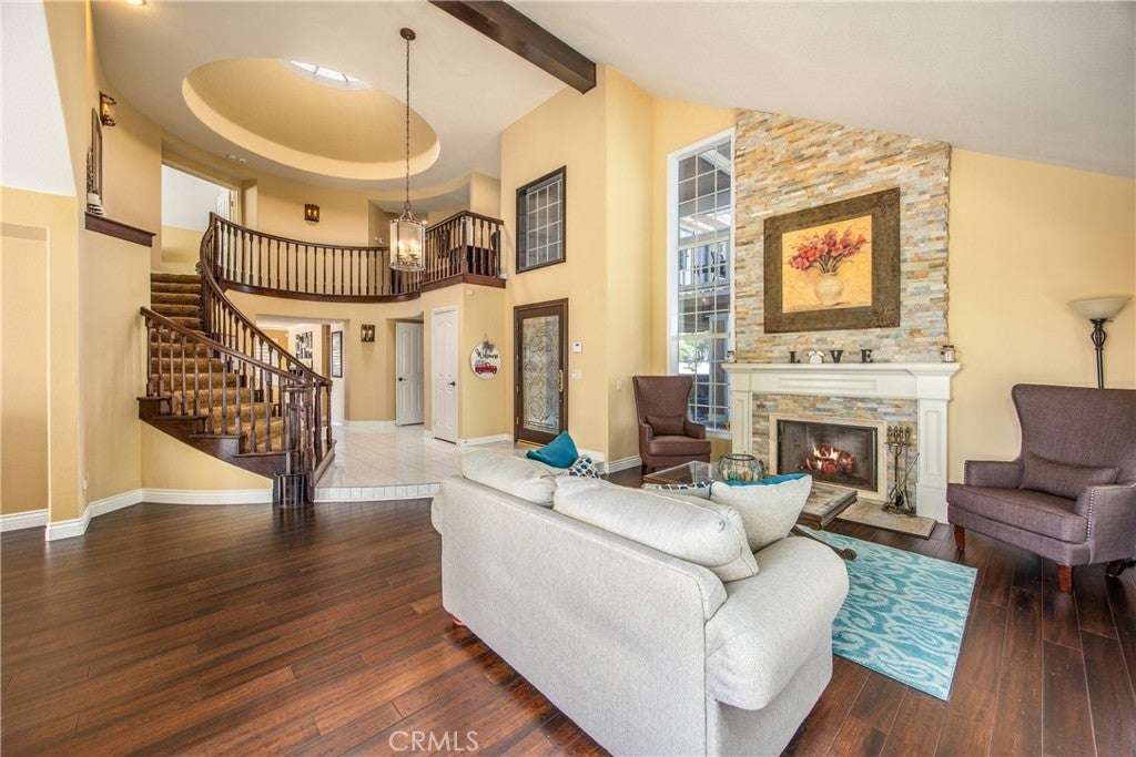 Living Room, Family Room, Primary Bedroom, Raised Hearth, See Through