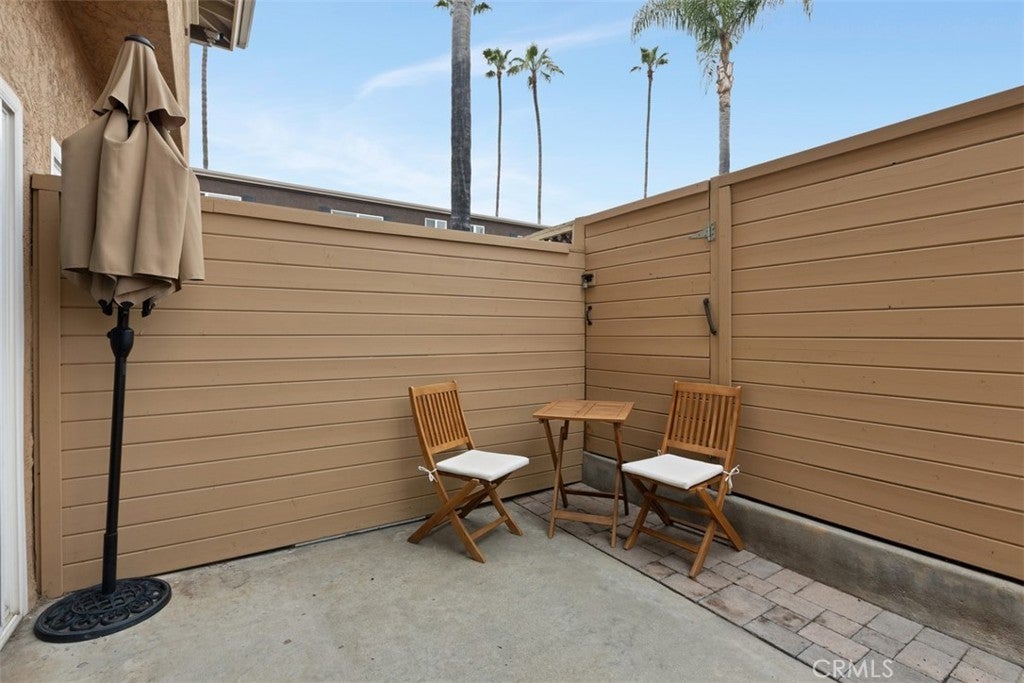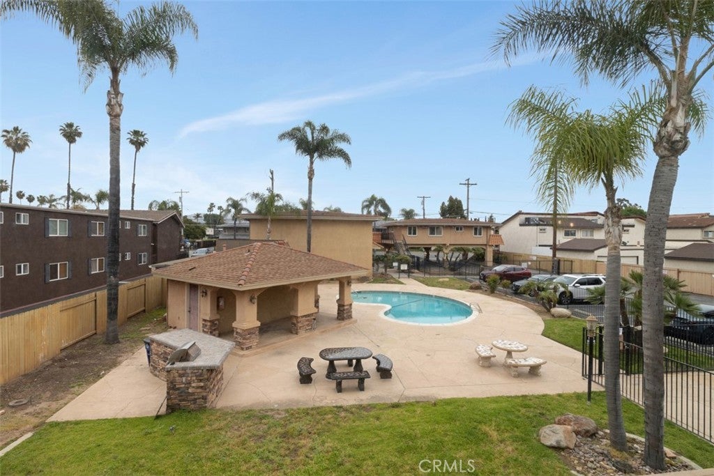 Back on the market as lender would not approve short sale. Move-In Ready Villa Toscano Townhome, Excellent Opportunity, to get into this beautifully updated Villa Toscano townhome featuring stylish wood plank laminate flooring through most of the property, tile in the kitchen and bathrooms, upgraded kitchen offers crisp white cabinetry, sleek granite countertops, modern stainless-steel appliances, and a spacious dining area — perfect for everyday living or entertaining guests. A convenient half bath is located on the main level. Step down into the open living room, complete with a cozy fireplace and direct access to a large private patio — ideal for outdoor entertaining. The patio includes space for a raised garden or outdoor gym and is adjacent to a generous storage area that could easily serve as a workshop or art studio. Upstairs, you'll find a spacious primary bedroom with mirrored wardrobe doors and views of the sparkling pool and BBQ area and a secondary bedroom with wall to wall closet with mirrored wardrobe doors and a large window to let in plenty of natural light. The shared ensuite bathroom has been elegantly renovated with a modern tiled shower/tub combo, a contemporary dual-sink vanity, and ample counter space. Additional highlights include: Fresh interior paint In-unit laundry closet with washer/dryer combo and upper storage cabinet Two designated parking spaces - #6 in the alley and #28 (2 over from the fence in front of unit) A second, spacious gated storage unit #16 (located in the pool area) This gated community is comprised of 27 units, is centrally located with quick access to the 8 and 67 freeways, 9.6 miles from San Diego State University, 17 miles from University of San Diego, 19miles from San Diego International Airport, and is just a short distance from parks, schools, church, shopping, amusement parks, and beach. Don't miss your chance to own this turnkey home in a desirable location!