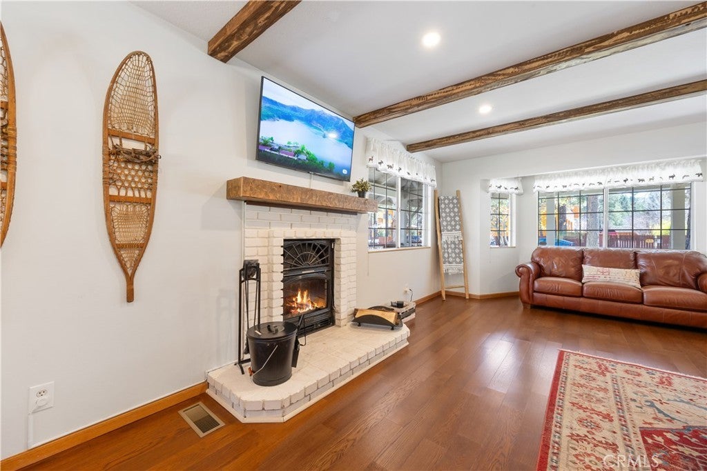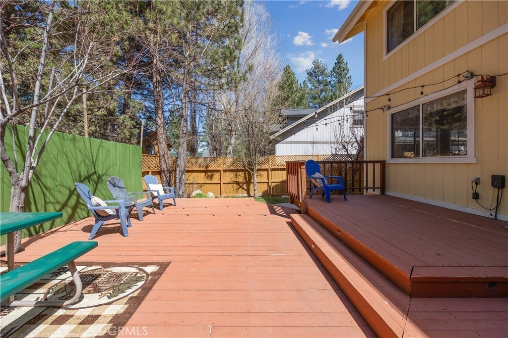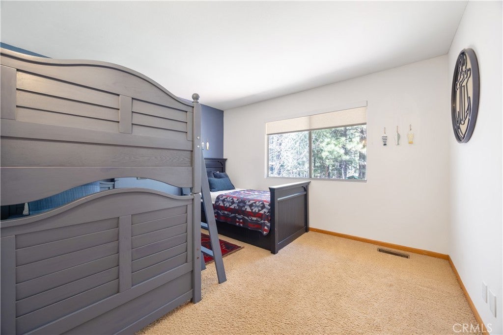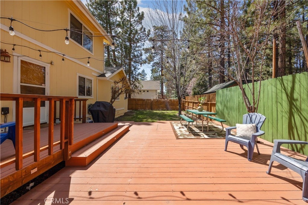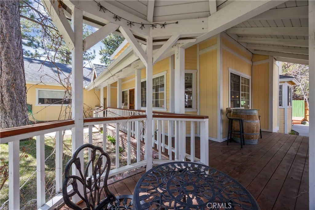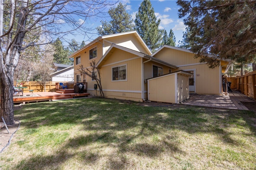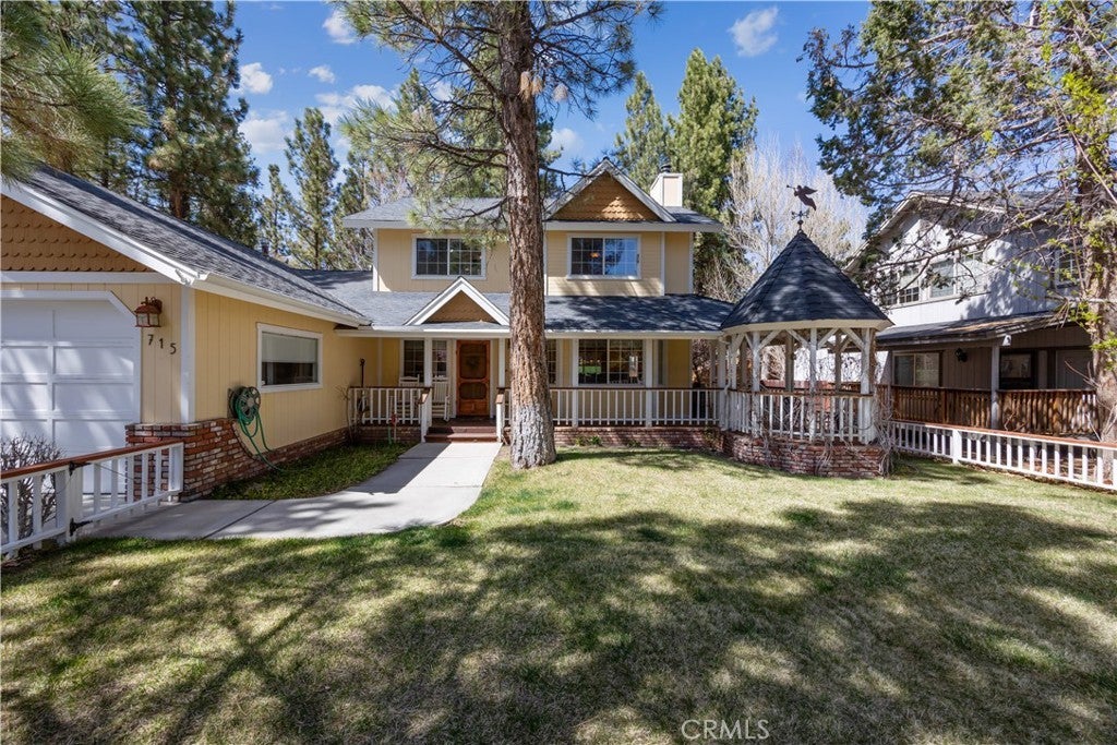 Welcome to your dream mountain retreat in the heart of Big Bear City's highly sought after Forest Springs neighborhood with underground utilities. Nestled on a quiet cul de sac surrounded by towering pines, this beautifully maintained, custom built home offers the perfect blend of style, comfort, and functionality. This property is ideal as a full time residence, weekend escape, or income-generating property. With 4 spacious bedrooms, including a main floor bedroom, 3 full bathrooms, including a primary suite with a spa-like jacuzzi tub, and a versatile bonus room perfect for a home office, den, or game room, this spacious home is designed for both relaxation and entertainment. Pride of ownership shines through with thoughtful upgrades like newer wood floors, decorative beams, recessed lighting, and updated fixtures throughout. At the heart of the home is the spacious kitchen boasting granite countertops, oak cabinetry, a central island, coffee bar, and high end Whirlpool and Bosch appliances, plus a walk in pantry to keep everything organized. The light filled great room is anchored by a cozy wood burning fireplace and 180 degree bay windows that frame the breathtaking beauty of Big Bear’s true four seasons. Step outside into your own private oasis that features a beautifully landscaped, fully fenced yard bursting with low maintenance perennials, lush greenery, and an automated, in ground sprinkler system. Enjoy al fresco dining on the large rear deck, cozy up with a book on the wrap around covered front porch, or unwind in the ivy laced gazebo with a glass of wine or cocoa under the stars. In the backyard, there is 220v electrical in place for a future spa. The backyard also features a large shed that matches the exterior paint and theme of the main home. Additional amenities include a 3 car attached garage with a "Fun Zone" that features ping pong, foosball, and air hockey, a laundry/mudroom with direct access to the main home, garage and backyard, ample attic storage, and a large concrete driveway with room for all your vehicles and toys. This property is South facing, resulting in lower maintenance costs during the winter months, and is situated on a large, flat lot. Conveniently located near hiking trails, shopping, dining, and just minutes from Bear Mountain and Snow Summit resorts, this home is a rare find. Don’t miss your chance to experience the charm, serenity, and lifestyle that only Big Bear can offer.