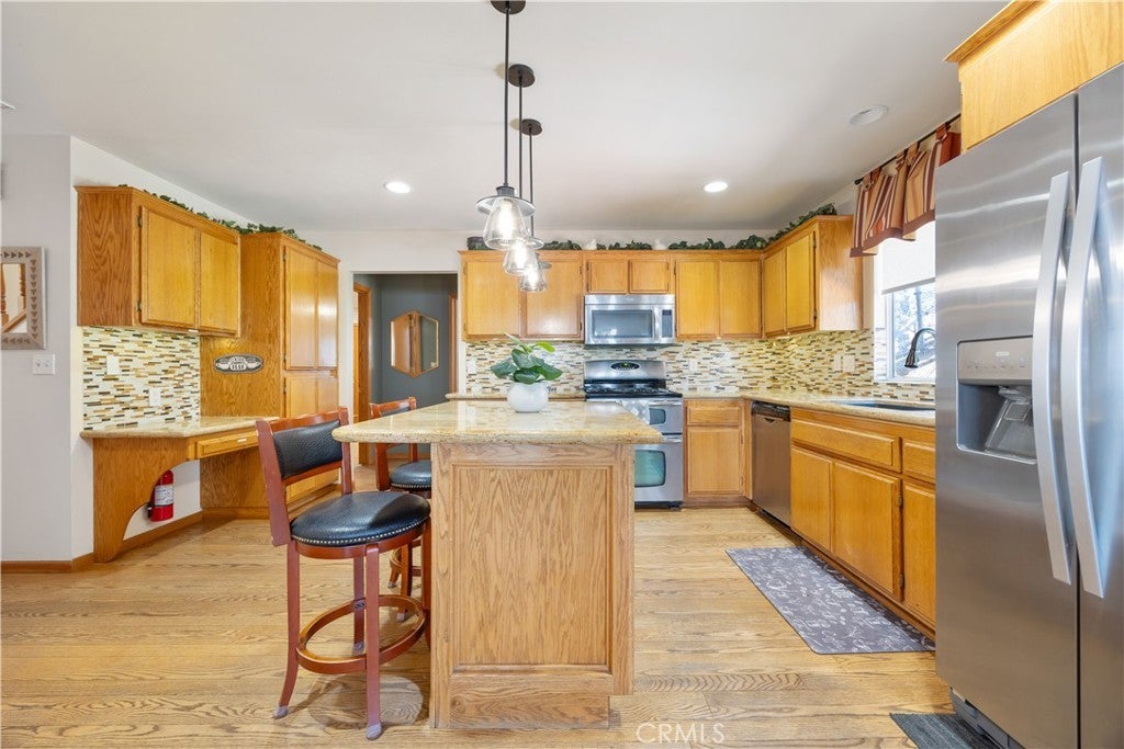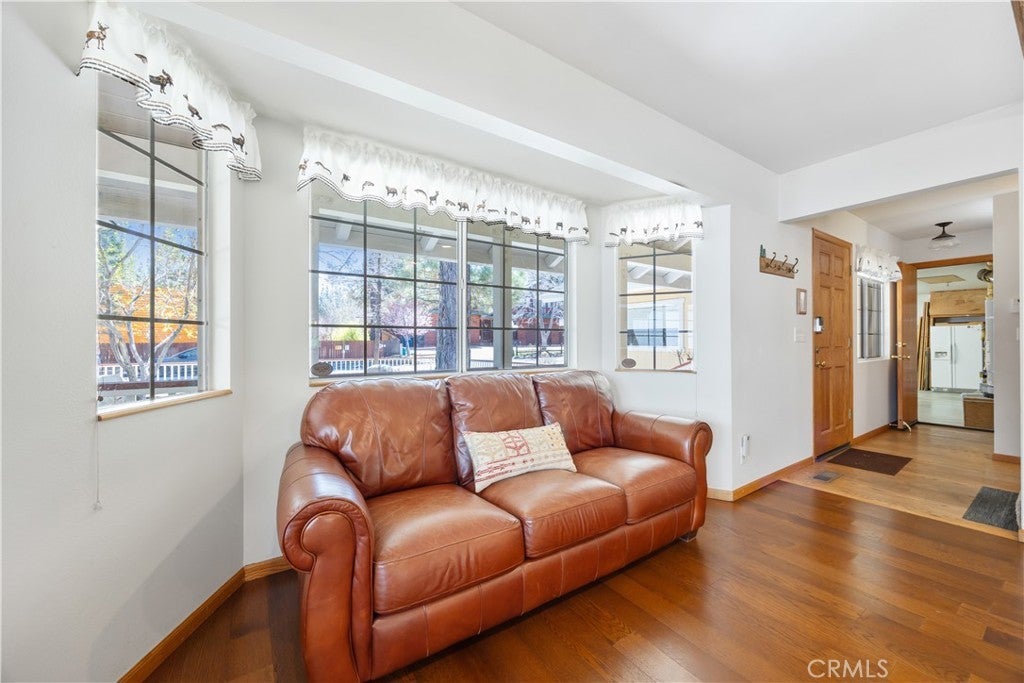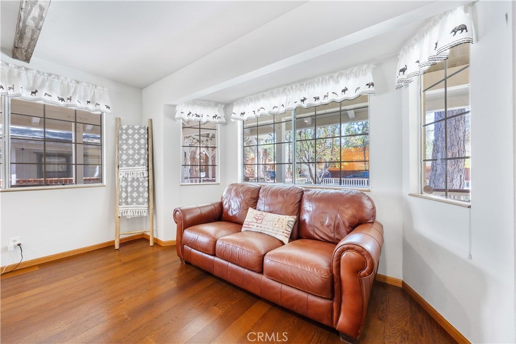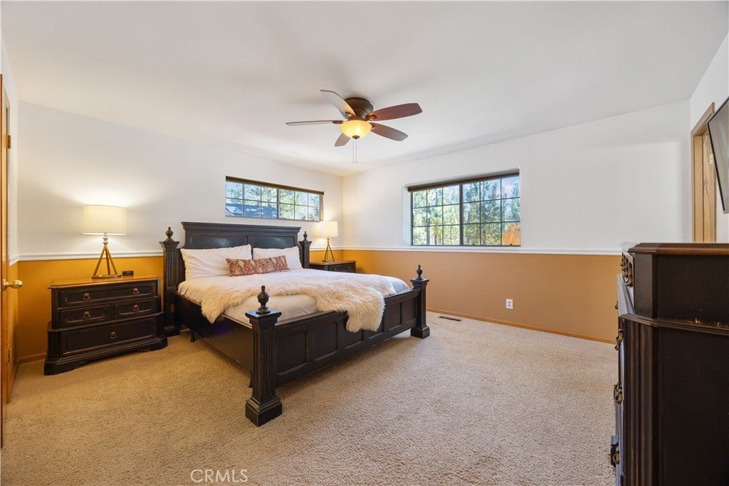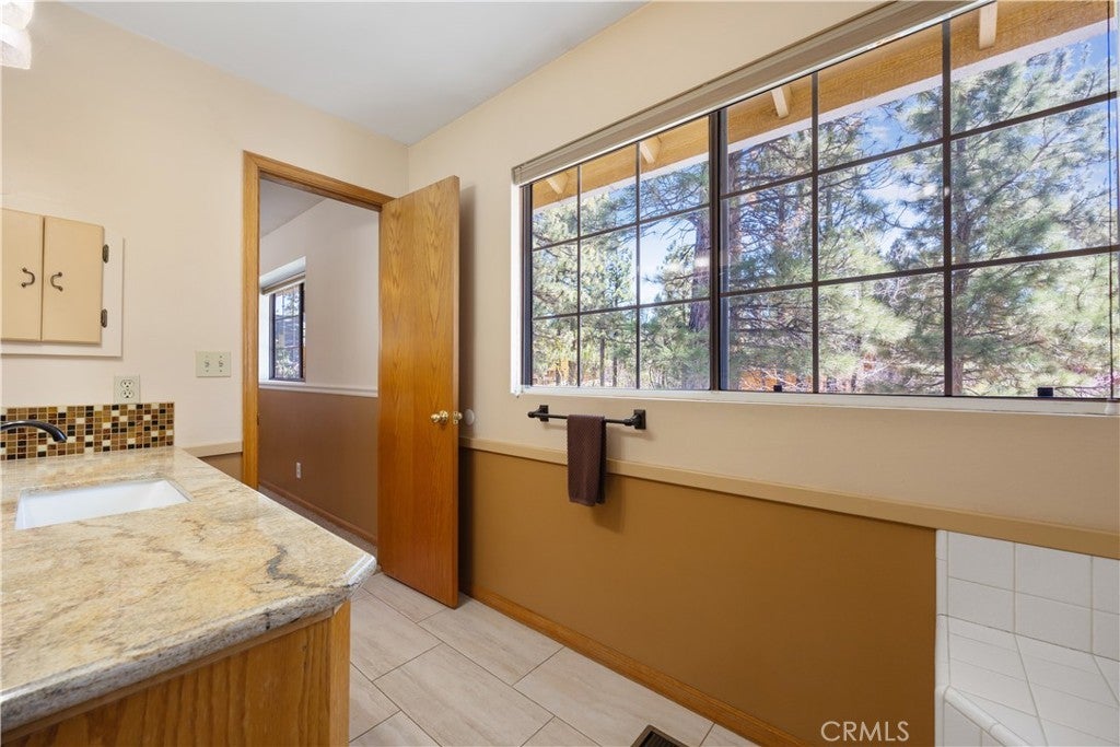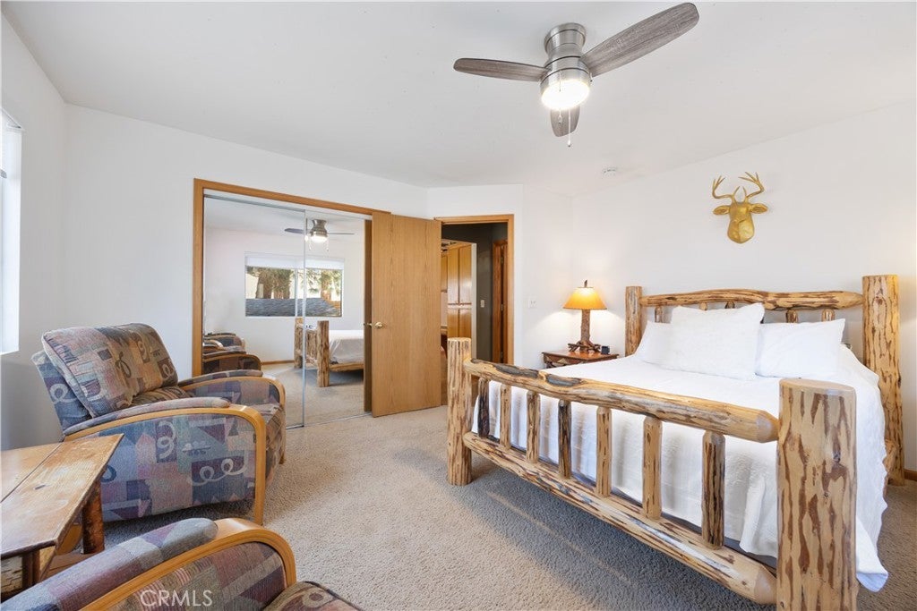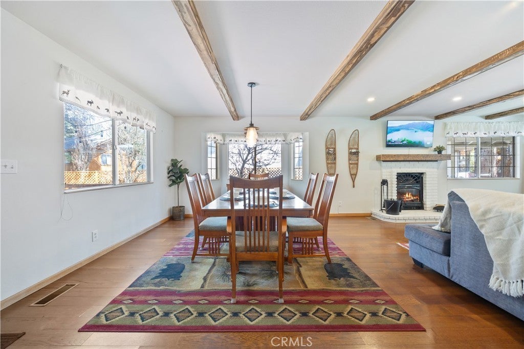 Welcome to your dream mountain retreat in the heart of Big Bear City's highly sought after Forest Springs neighborhood with underground utilities. Nestled on a quiet cul de sac surrounded by towering pines, this beautifully maintained, custom built home offers the perfect blend of style, comfort, and functionality. This property is ideal as a full time residence, weekend escape, or income-generating property. With 4 spacious bedrooms, including a main floor bedroom, 3 full bathrooms, including a primary suite with a spa-like jacuzzi tub, and a versatile bonus room perfect for a home office, den, or game room, this spacious home is designed for both relaxation and entertainment. Pride of ownership shines through with thoughtful upgrades like newer wood floors, decorative beams, recessed lighting, and updated fixtures throughout. At the heart of the home is the spacious kitchen boasting granite countertops, oak cabinetry, a central island, coffee bar, and high end Whirlpool and Bosch appliances, plus a walk in pantry to keep everything organized. The light filled great room is anchored by a cozy wood burning fireplace and 180 degree bay windows that frame the breathtaking beauty of Big Bear’s true four seasons. Step outside into your own private oasis that features a beautifully landscaped, fully fenced yard bursting with low maintenance perennials, lush greenery, and an automated, in ground sprinkler system. Enjoy al fresco dining on the large rear deck, cozy up with a book on the wrap around covered front porch, or unwind in the ivy laced gazebo with a glass of wine or cocoa under the stars. In the backyard, there is 220v electrical in place for a future spa. The backyard also features a large shed that matches the exterior paint and theme of the main home. Additional amenities include a 3 car attached garage with a "Fun Zone" that features ping pong, foosball, and air hockey, a laundry/mudroom with direct access to the main home, garage and backyard, ample attic storage, and a large concrete driveway with room for all your vehicles and toys. This property is South facing, resulting in lower maintenance costs during the winter months, and is situated on a large, flat lot. Conveniently located near hiking trails, shopping, dining, and just minutes from Bear Mountain and Snow Summit resorts, this home is a rare find. Don’t miss your chance to experience the charm, serenity, and lifestyle that only Big Bear can offer.