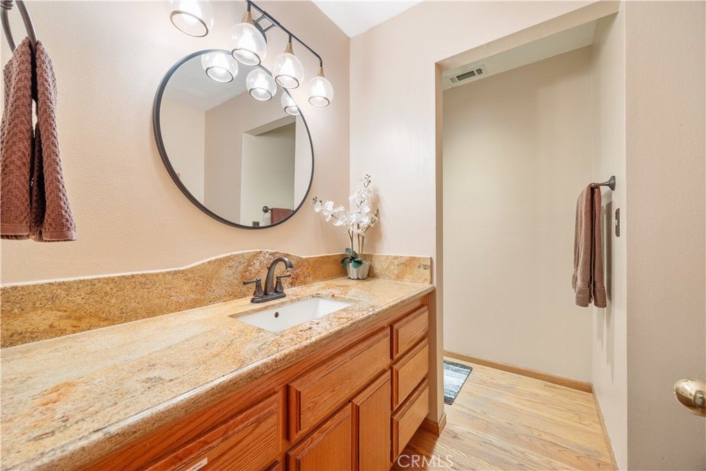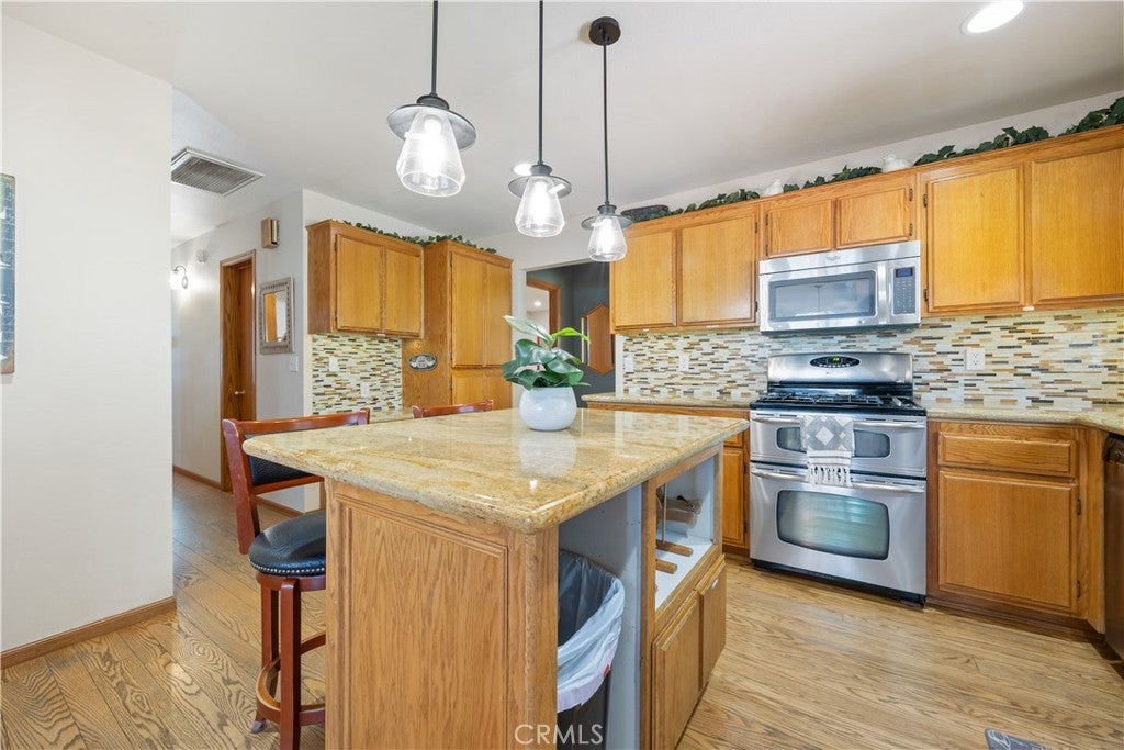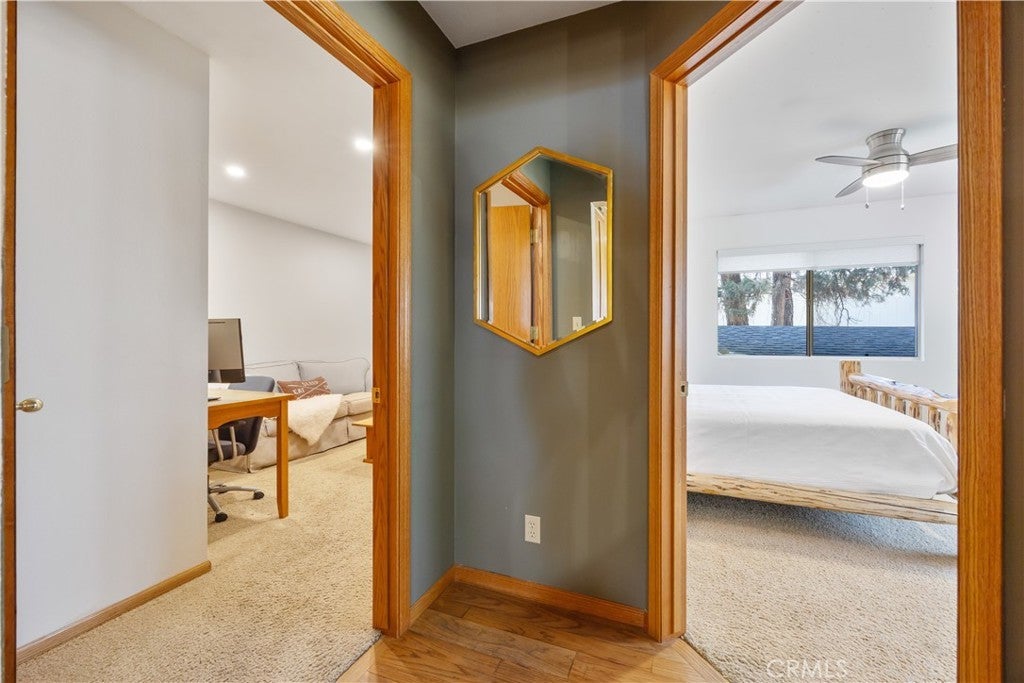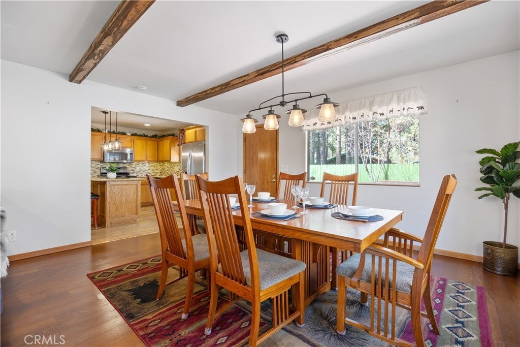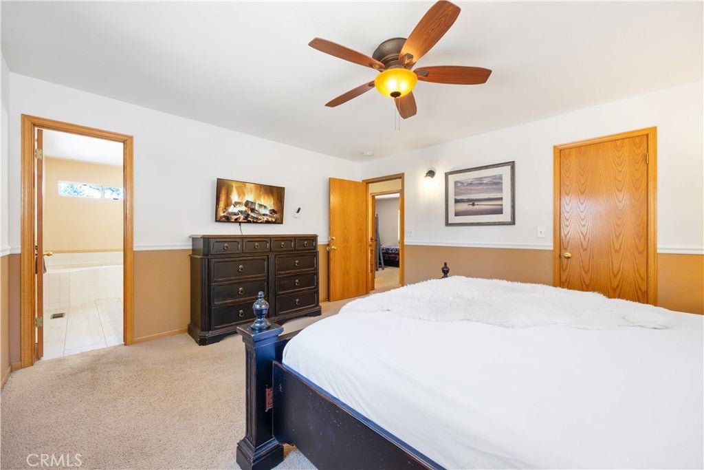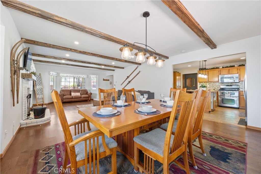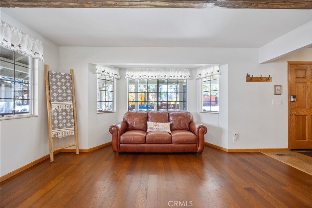 Welcome to your dream mountain retreat in the heart of Big Bear City's highly sought after Forest Springs neighborhood with underground utilities. Nestled on a quiet cul de sac surrounded by towering pines, this beautifully maintained, custom built home offers the perfect blend of style, comfort, and functionality. This property is ideal as a full time residence, weekend escape, or income-generating property. With 4 spacious bedrooms, including a main floor bedroom, 3 full bathrooms, including a primary suite with a spa-like jacuzzi tub, and a versatile bonus room perfect for a home office, den, or game room, this spacious home is designed for both relaxation and entertainment. Pride of ownership shines through with thoughtful upgrades like newer wood floors, decorative beams, recessed lighting, and updated fixtures throughout. At the heart of the home is the spacious kitchen boasting granite countertops, oak cabinetry, a central island, coffee bar, and high end Whirlpool and Bosch appliances, plus a walk in pantry to keep everything organized. The light filled great room is anchored by a cozy wood burning fireplace and 180 degree bay windows that frame the breathtaking beauty of Big Bear’s true four seasons. Step outside into your own private oasis that features a beautifully landscaped, fully fenced yard bursting with low maintenance perennials, lush greenery, and an automated, in ground sprinkler system. Enjoy al fresco dining on the large rear deck, cozy up with a book on the wrap around covered front porch, or unwind in the ivy laced gazebo with a glass of wine or cocoa under the stars. In the backyard, there is 220v electrical in place for a future spa. The backyard also features a large shed that matches the exterior paint and theme of the main home. Additional amenities include a 3 car attached garage with a "Fun Zone" that features ping pong, foosball, and air hockey, a laundry/mudroom with direct access to the main home, garage and backyard, ample attic storage, and a large concrete driveway with room for all your vehicles and toys. This property is South facing, resulting in lower maintenance costs during the winter months, and is situated on a large, flat lot. Conveniently located near hiking trails, shopping, dining, and just minutes from Bear Mountain and Snow Summit resorts, this home is a rare find. Don’t miss your chance to experience the charm, serenity, and lifestyle that only Big Bear can offer.