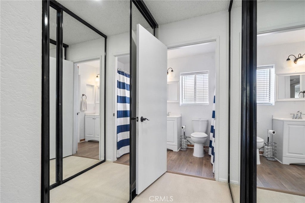 Welcome to 1507 Elkwood Street, your charming retreat in a prime location. This lovely 2-bedroom, 2-bathroom condo has 1,008 square feet of thoughtfully designed living space, perfect for those seeking a cozy and efficient home. The area feels woodsy with many trees and views of the valley! Step inside to find an inviting atmosphere where two large windows allow natural light to highlight the recently remodeled interior. The new wood-look floors in the living area add a touch of elegance, while the contemporary carpet on the stairs and in the bedrooms offer warmth and comfort. The fireplace in the living area is inviting and creates a wonderful ambiance, making it a great spot for gatherings or quiet nights in. There is a bathroom conveniently located downstairs near the entrance to your attached 2-car garage. The upstairs features vaulted ceilings in the bedrooms, providing a sense of openness and light. The primary suite, freshly painted, includes an attached bathroom and dual closets with mirrored sliding doors. Enjoy the outdoors on your two patios – one at the front where you have views of the valley, and incredible city lights in the evening. The large patio/deck off the upstairs landing is a great place to entertain or enjoy morning coffee. Have a relaxing afternoon or evening at the refreshing communal pool and heated bubbling jacuzzi just steps away; perfect for these warm summer days and nights! You will love the proximity to local amenities, all while being just 20 minutes from downtown Los Angeles and 45 minutes to the beach. Air conditioner new in 2023, Water heater new in 2019. You can hike around this beautiful scenic complex for an enjoyable walk or take a short jaunt up the street to the corner for the gorgeous Galster Wilderness Park. This is California living at its finest, and can be best appreciated by seeing it for yourself! This community rarely has a property for sale. HOA covers water, trash, insurance and external maintenance and repairs. Schedule a showing today before FOMO sets in!