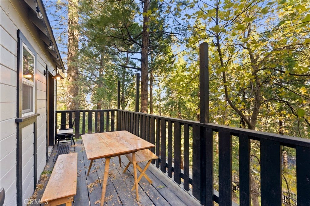 Exceptional remodeled cabin with a finished basement: Primary residence features 2 bathrooms, 1 bedroom, and stunning vistas with a spacious deck. The basement boasts 1 bedroom and 1 bathroom, making this property a must-see. Ideally situated for outdoor enthusiasts, this charming forest retreat in Crestline is mere minutes from the lake, hiking trails, and prime fishing spots. Perfect for a serene weekend getaway, this beautifully remodeled cabin seamlessly blends rustic charm with modern comforts, courtesy of thoughtful updates and detailed accents throughout. DO NOT DISTURB OCCUPANT please submit pre approval and proof of funds when requesting private showing.