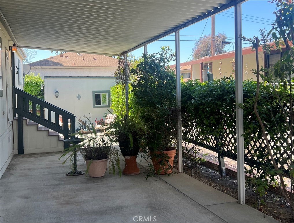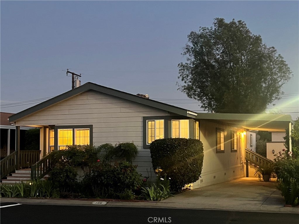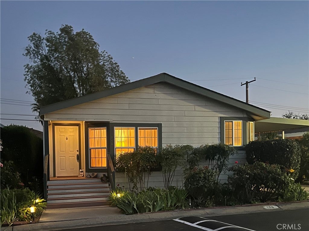 Welcome to Upland's Eldorado Mobile Home Park Community 55+ This lovely move in ready home starts with a Beautiful Rose and Iris garden in front. Single level 3 bedroom 2 bath Manufactured doublewide home comes with ample closets and cabinets. This home has an open floorplan with a Livingroom with vaulted ceiling, Dining room and Additional area for a Study/Den/office or various uses. Nicely appointed kitchen with white cabinets and white appliances. Indoor Laundry room with washer and dryer included which leads to the Carport with room for 2 vehicles. Large storage shed included. The community offers a Pool, spa and clubhouse. Senior rent control community requiring park management approval.