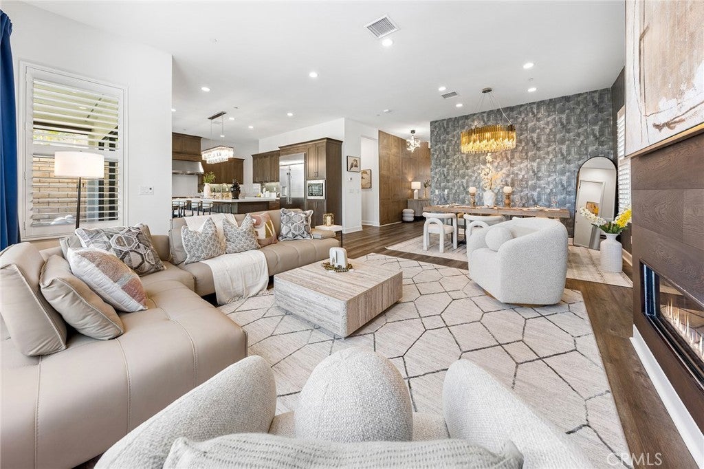 This Stunning Estate has TONS OF UPGRADES, BREATHTAKING VIEWS and is located in the prestigious Teresina Community built by Master Builder Shea Homes. NO MELLO-ROOS and LOW PROPERTY TAX! There are NO HOUSES in the backyard offering the UNOBSTRUCTED VIEWS OF MOUNTAINS, SUNRISE, SUNSET and CITY LIGHTS VIEWS! The Lot looks much bigger than it's actually recorded! PAID OFF SOLAR SYSTEM! This beautiful home has one of the FAVORITE FLOOR PLANS! Open, Bright, High Ceilings and Contemporary Looking throughout! It features 4 Bedrooms and 6 Bathrooms with a total of 4 Suites. The Ground level has an In-Law Suite plus a Powder Room! The Third Level features a spacious Bonus Room with a Bathroom and Big-Sized Balcony, which can be used as the 5th Bedroom, an Office or an Entertainment Room! The Upgraded Gourmet Kitchen opens to a spacious Family Room with a modern and cozy Fireplace, overlooking the backyard through multiple Contemporary Sliding Glass Doors. The impressive Kitchen features an Oversized Central Island, a Walk-in Pantry, Stainless-Steel Built in Appliances including a 6 Burner Gas Cooktop with Griddle! The Primary Suite on the Secondary Level offers a HUGE OUTDOOR PATIO for relaxation and views! The Soaking Tub, Dual Vanities and Large Windows in the Primary Bathroom overlooking the views as well. The Split Floor Plan on the Secondary Level also includes an Open Loft! Other spacious Two Suites and an Individual Laundry Room with a sink and usable cabinets finish the Second Floor. Other features include $$$ Custom Made Window Shutters with Remote Controls, Dual Zone AC/Heating, beautiful Waterproof Wood Floor throughout, and EV Charger! Professional Landscaped Backyard is another paradise to enjoy! Low Maintenance Artificial grass looks green and peaceful. This home is meticulously designed, maintained and built for functionality with attention to every detail! Only minutes to Award-Winning Schools, Freeways, Dining, and Shopping Centers. This is a Truly Lovely Home! Bring your imagination, and this HOME will be yours!!! Must see to appreciate it!