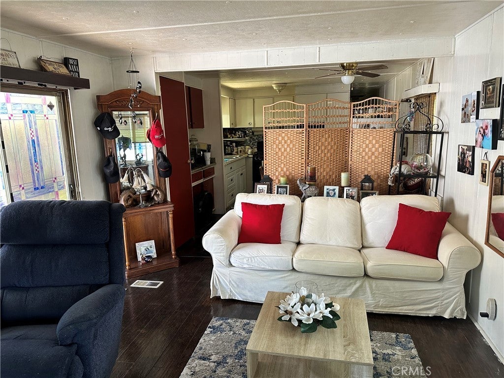 Nestled in a San Dimas Adult Park is a cute 2 bed, 1 bath, single-wide mobile home on a corner lot, giving you lots of room to entertain, enjoy your morning coffee of just relax outside. There's plenty of space to park two cars and a shed to store all your gardening supplies. There are three wall A/C units. One in the Front room, Middle room and Primary bedroom. The bath features a newly installed walk-in shower.