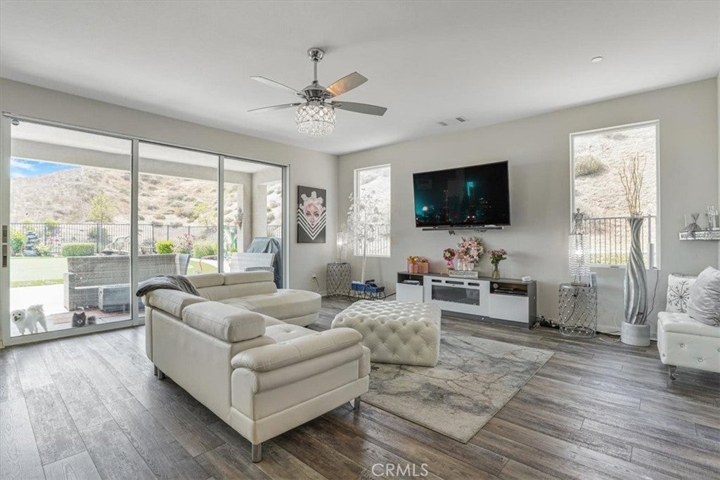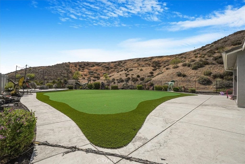 Welcome to Your Dream Home in Santa Clarita’s Exclusive Skyline Community! Situated on one of the largest lots in the neighborhood, at the top of the hill and at the end of a quiet cul-de-sac; this stunning 5-bedroom, 3-bathroom contemporary home offers a rare blend of luxury, comfort, and functionality in one of Santa Clarita’s most desirable communities. Step inside to discover soaring ceilings and expansive windows that fill the space with natural light and showcase breathtaking canyon and mountain views. The open concept floor plan creates a seamless flow between the chef-inspired kitchen, spacious living areas, and custom-designed electric fireplace, perfect for both relaxed family living and stylish entertaining. A full bedroom and bathroom on the main level provide ideal flexibility for guests, multi-generational living, or a home office. There’s also a bonus room currently used as a gym that could easily be converted into a sixth bedroom, office, or playroom. Upstairs, you’ll find four more generously sized bedrooms, all with custom closets, along with two full bathrooms. The primary suite is a true retreat, featuring panoramic views, a spa-like ensuite with a double vanity, and generous storage throughout. Don’t miss the indoor open-air media room, perfect for movie nights, game days, or quiet relaxation. The real showstopper is the backyard, designed to entertain and impress! It features a 4-hole putting green with creative obstacle landscaping, a fire pit, and an elevated platform perfect for live music or DJ sets, making it a favorite hangout for both kids and adults. There’s even enough space to add a full-size swimming pool if desired. Additional highlights include a 2-car garage with driveway parking for three extra vehicles; drought-tolerant landscaping in the spacious front yard, a dedicated laundry room with hookups, owned solar panels, and million dollar views from nearly every angle. The Skyline Community offers two private clubhouses with amenities including resort-style pools, kids’ water play areas, and beautifully maintained parks. This home is more than just a place to live, it’s a lifestyle destination for families who love to host, relax, and enjoy the very best of Southern California living. Don’t miss your chance to own one of Skyline’s premier properties, served by excellent schools, it offers the perfect balance of comfort, beauty and quality education. Contact the listing agent today!